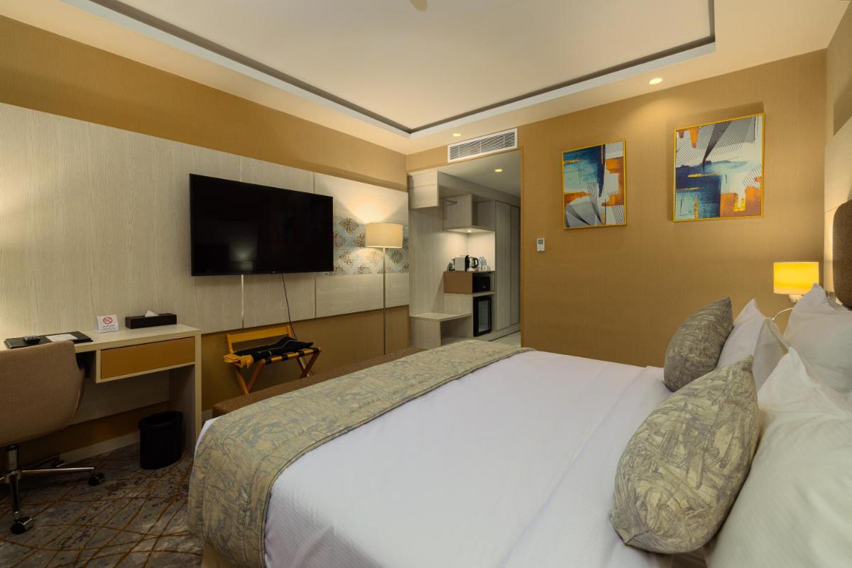 2H Hotel, situated in Oran, offers world-class services just 3.7 miles from the famous Oran Santa Cruz fortress. Enjoy a suite with a terrace, free private parking, and access to a restaurant. Experience 5-star amenities such as a concierge service, 24/7 front desk, airport transport, and complimentary Wi-Fi. Guests will appreciate spacious rooms equipped with a desk, coffee machine, fridge, safe, flat-screen TV, private bathroom with shower, closet, and electric tea pot. Indulge in a buffet or continental breakfast daily. Situated near Musée du Moudjahid, Musée National Ahmed Zabana, and Musée de l'artisanat, this luxurious establishment ensures comfort and convenience for travelers seeking the celebrity experience.