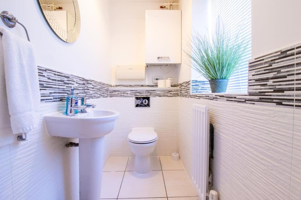 This charming four-bedroom townhouse nestled in Milton Keynes offers a serene escape within easy reach of historical sites and leisure attractions. Situated just 13 miles from Bletchley Park and 17 miles from Woburn Abbey, this property boasts a peaceful street view and a tranquil garden setting. Each bedroom is tastefully decorated, offering comfort and relaxation. Enjoy the convenience of complimentary Wi-Fi throughout the property and secure parking on-site, making travel arrangements effortless.