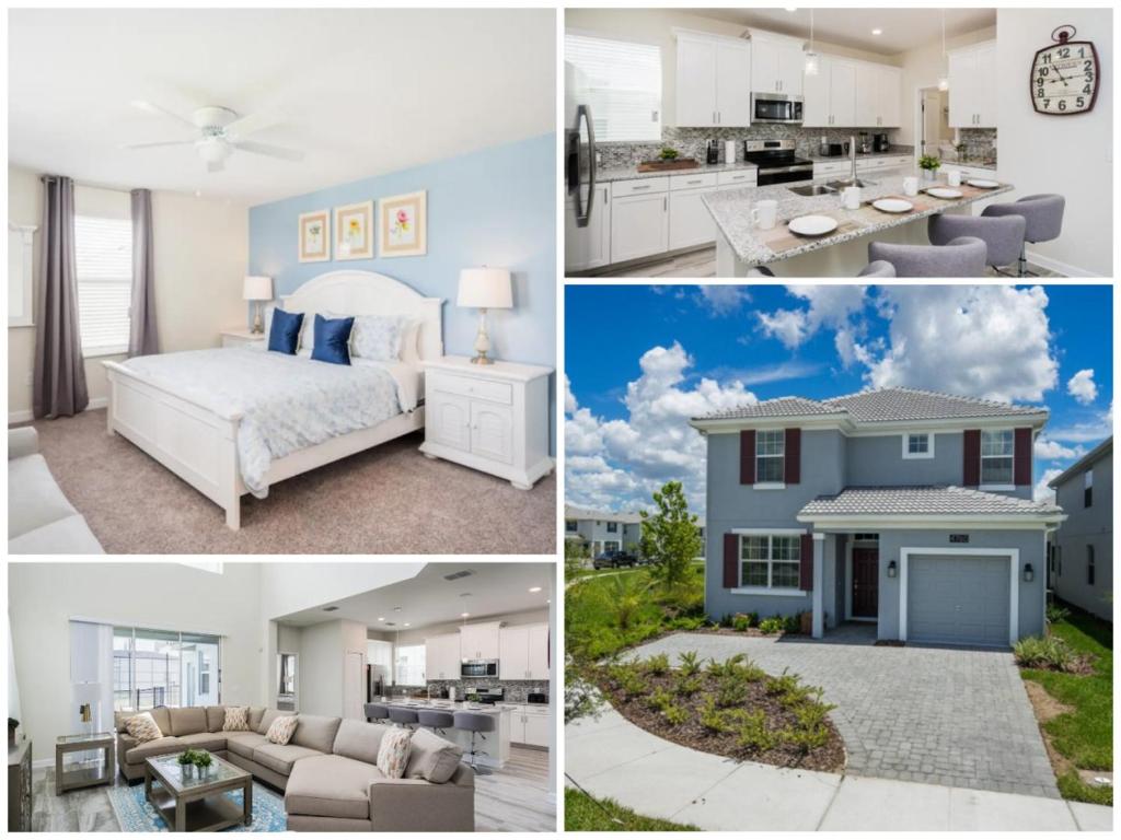 5 Bedroom 5 Bathroom Storey Lake 4760KC, situated in Kissimmee, is a luxurious vacation home offering 5 spacious bedrooms, 2 living rooms, and a fully-equipped kitchen featuring a dining area. With amenities such as free WiFi, private parking, and a cozy patio, this property caters to both families and groups seeking relaxation and adventure. Enjoy the convenience of being near attractions like Gatorland and Disney Springs, while experiencing a serene environment through its own private entrance and comprehensive safety measures. The property boasts modern comforts including a fitness room, an outdoor swimming pool, and various recreational areas suitable for different age groups. Just 14 miles from Orlando International Airport, this ideal destination promises a memorable getaway with plenty of activities waiting for you.