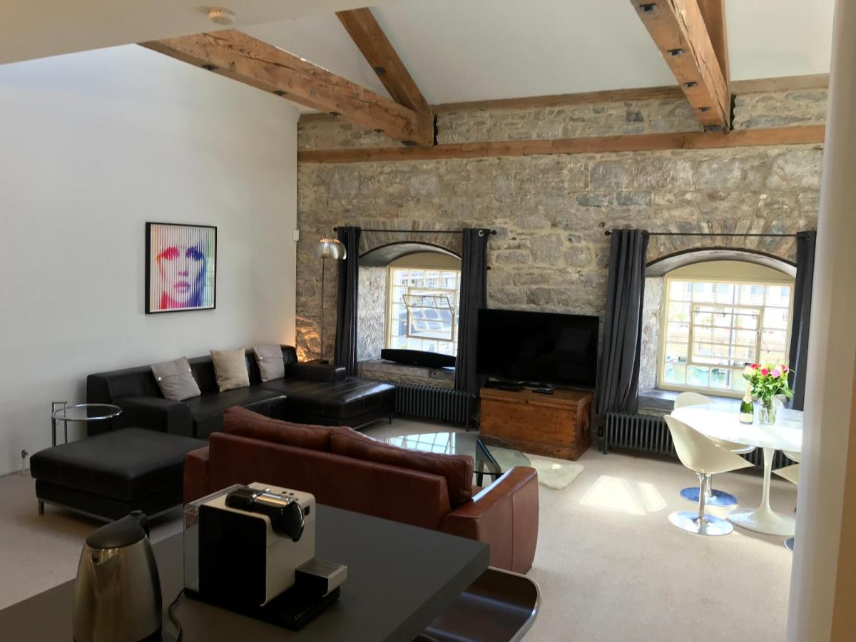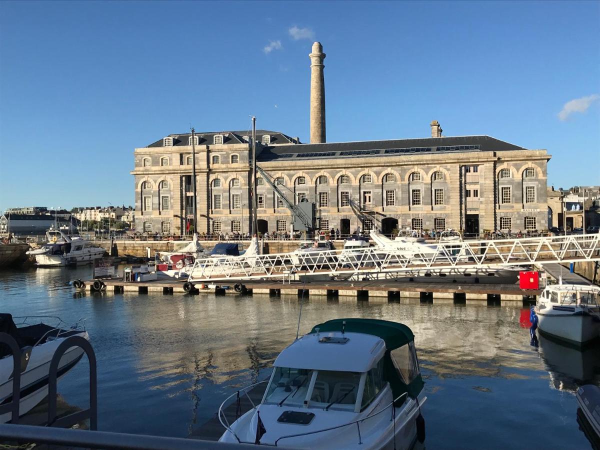 The Royal William Yard Apartment offers free private parking, complimentary Wi-Fi access, an accessible elevator, and a fully-equipped kitchen with modern appliances such as a dishwasher and oven.