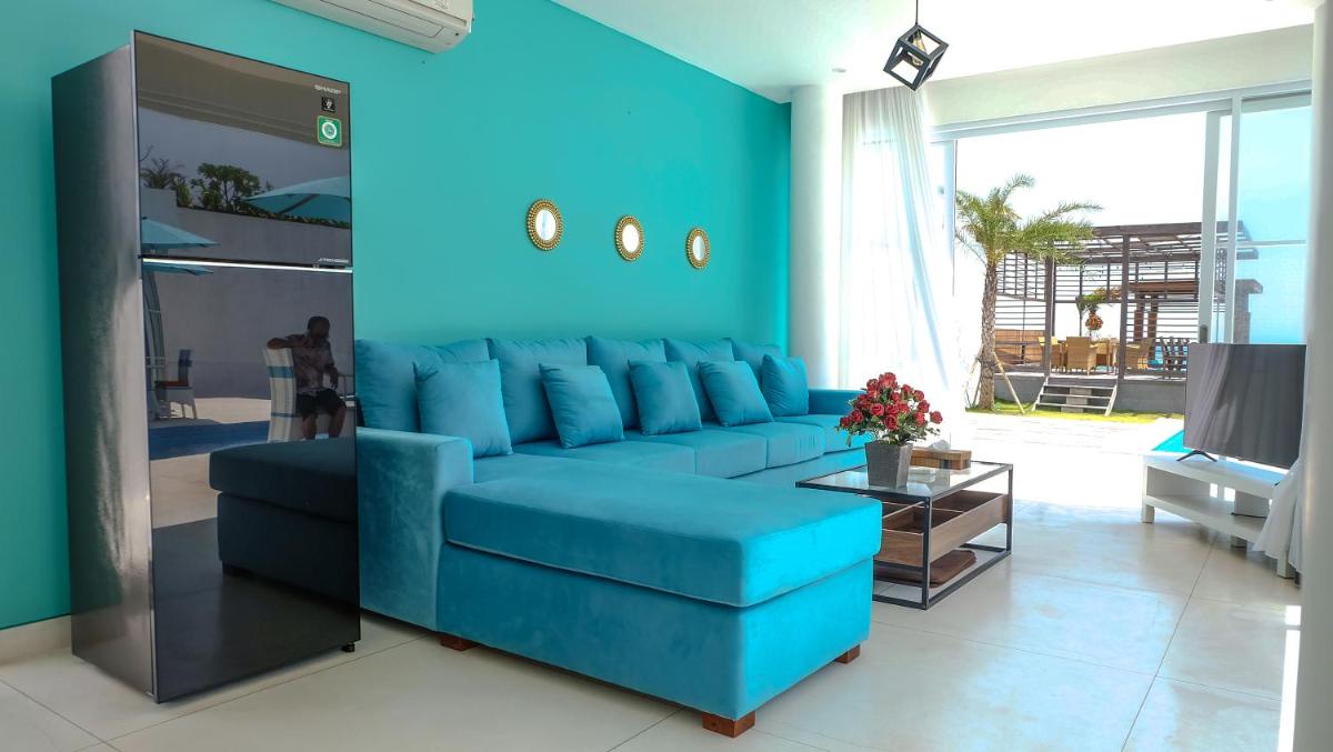 Each unit at the villa comes equipped with modern amenities such as air conditioning, plush seating areas, flat-screen TVs with streaming services, fully-equipped kitchens, dining areas, and safe-deposit boxes. Additionally, each unit includes a private bathroom with a bathtub and a hairdryer, making relaxation a breeze post-aqua activities. A charming patio with an outdoor dining area offers a picturesque setting under the watchful gaze of the ocean, perfect for enjoying meals al fresco.