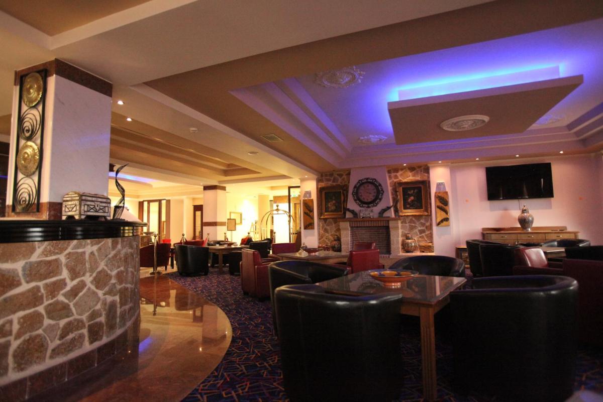 A convenient and luxurious retreat awaits visitors seeking comfort and relaxation in Nestorio. Afkos Grammos Boutique Hotel Resort offers a serene escape with its lush gardens and proximity to both historical landmarks and recreational opportunities. Guests enjoy access to a seasonal outdoor swimming pool, a fitness center, and free private parking, making their stay hassle-free. Room service ensures convenience during meal times, while the hotel's complimentary breakfast and bar offer a delightful start to each day. For those who wish to explore further, the nearby Musγγραφικό Mousείο (Lογragrphikò Mouséio) is just 6.4 miles away, offering insights into ancient Greek culture and history. With its prime location, guests are within reach of various attractions such as the Byzantine Museum of Kastoria, which is approximately 16 miles away. For sports enthusiasts, the resort features a minigolf course and tennis courts, providing ample opportunity for leisurely activities. Additionally, car rentals are readily available for those desiring to explore the surrounding areas. The 4-star facility also includes amenities like a shared lounge, free Wi-Fi throughout, and airport transportation services, ensuring a seamless journey home upon departure.