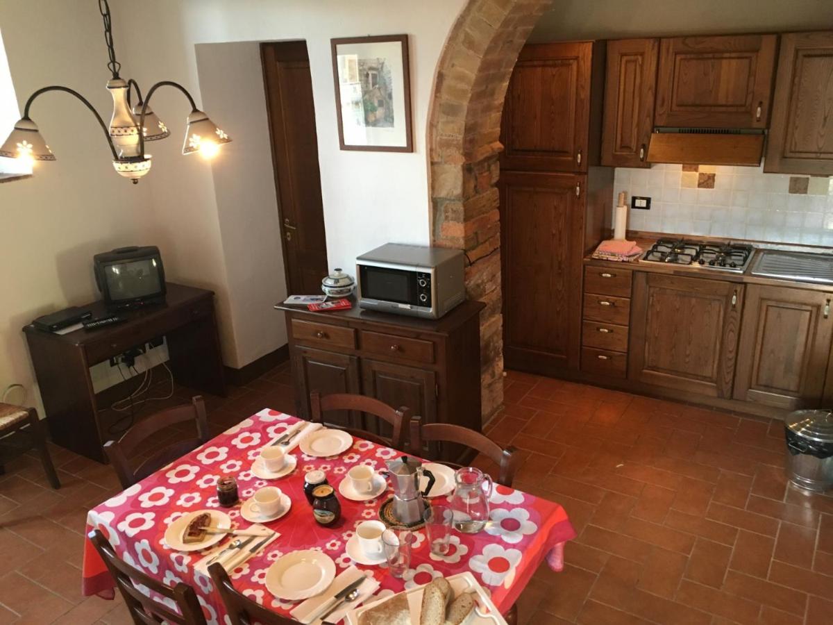 The accommodation offers a simple yet excellent view over the Tuscan hills.