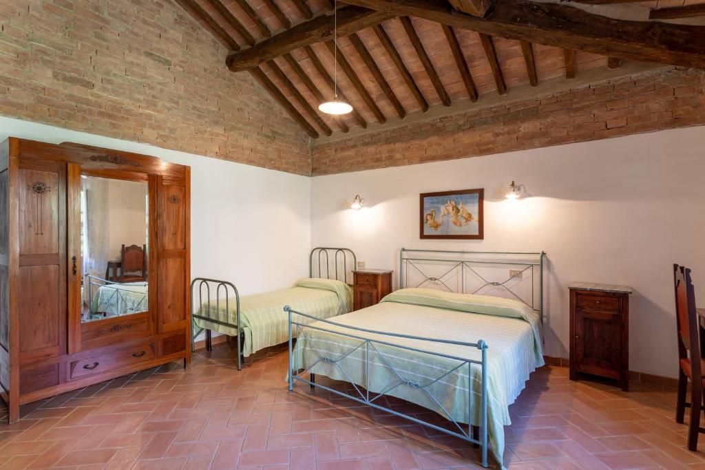 Agriturismo S. Eurosia in Montalcino offers a historic setting with an authentic atmosphere, featuring a beautifully landscaped garden, a large swimming pool with breathtaking views, and a cozy terrace. Each apartment boasts a private bathroom, AC, and a fully-equipped kitchen. Relax in the outdoor seating area or enjoy the kids' playground. The family-friendly restaurant serves delicious Italian cuisine, complete with a buffet breakfast and à la carte choices. Free WiFi is available throughout, making it convenient for guests. Conveniently located near attractions like Piazza del Campo (42 miles) and Parco dei Mulini (19 miles), free parking is available onsite, and pets are welcome.