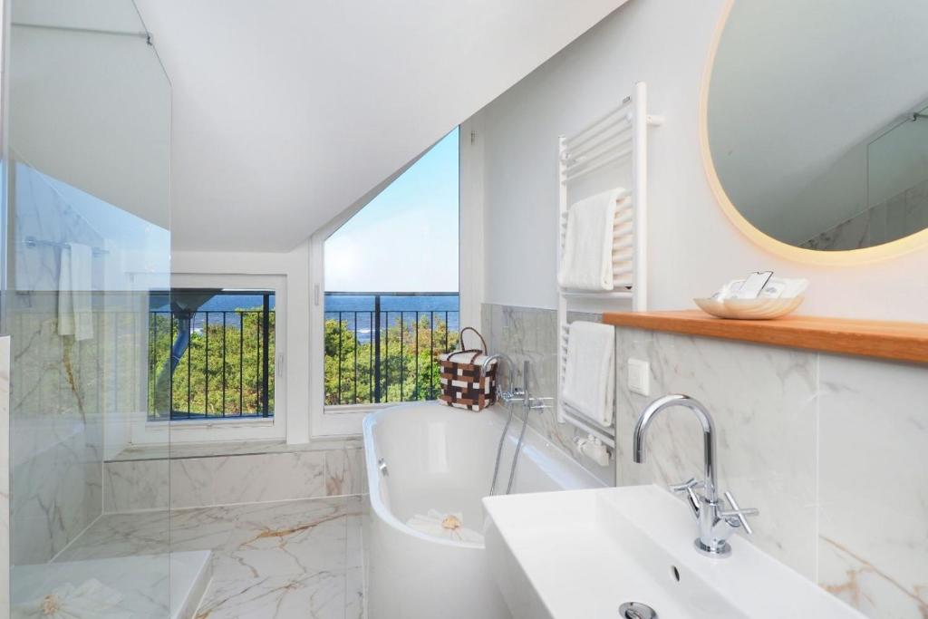 Indulge in the tranquil atmosphere of the newly renovated main building, which seamlessly blends into its picturesque setting along the beach promenade. Each room at the Strandhotel features modern amenities such as private balconies, ensuring a comfortable stay amidst the stunning coastal scenery.