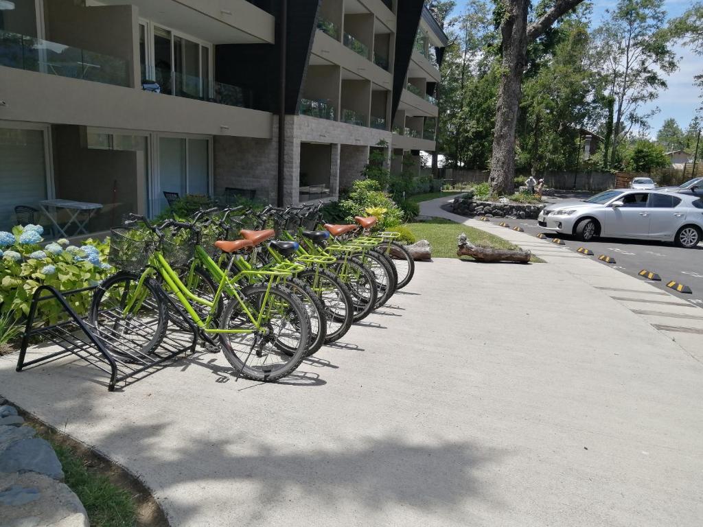 The apartment at Alta Vista Pucon Centro features a modern fitness center, a free on-site parking lot, and non-smoking rooms. It also has a free WiFi connection, a BBQ facility, and a balcony overlooking the garden.