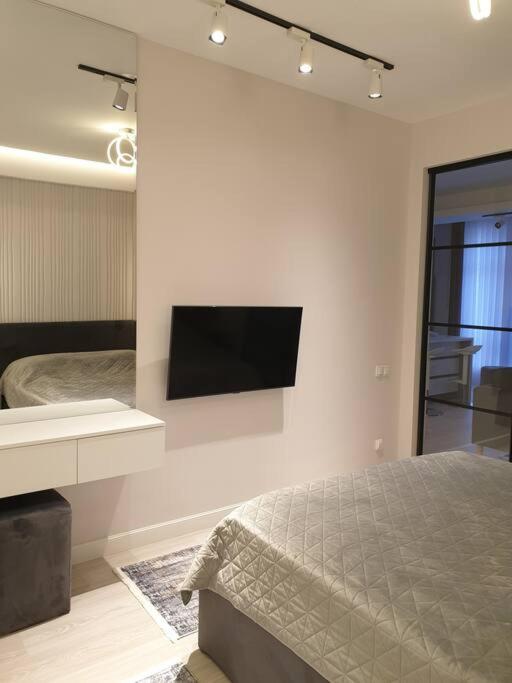 Featuring an inviting atmosphere, this spacious apartment comprises one bedroom, a cozy living room, and a well-equipped kitchen equipped with a dishwasher and kettle. A luxurious bathroom with a shower and bathrobe awaits, providing ample comfort after a long day. Accommodation includes all necessary amenities such as towels and bed linens, making every guest feel welcome and at home.
