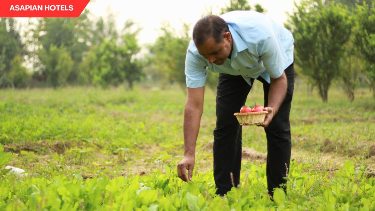The resort is surrounded by guava and mustard farms.