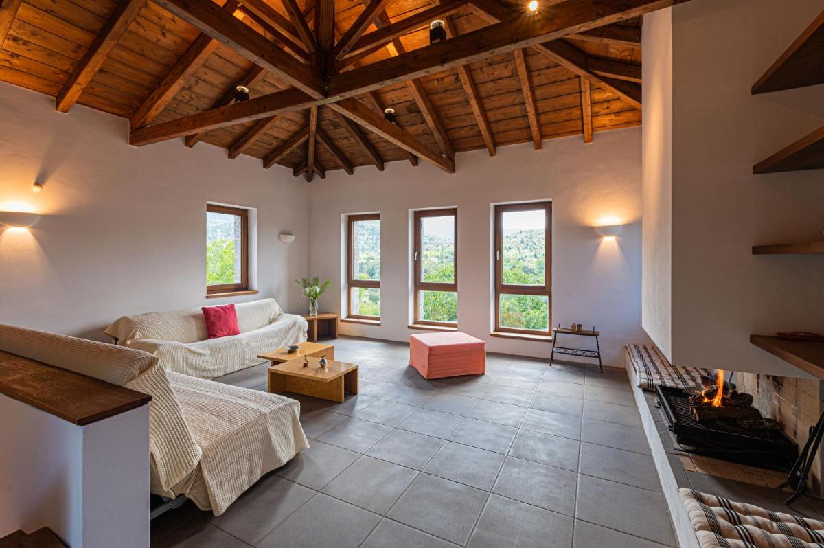 Anastasia House, nestled in Nymfasia, offers elegant accommodations with a stunning garden setting. Guests enjoy direct access to a charming balcony, ensuring they immerse themselves in nature while relaxing. The villa boasts ample space, featuring three well-appointed bedrooms, a modern living room equipped with a flat-screen TV, and a fully-equipped kitchen. Each bathroom is tastefully designed with showers, providing a luxurious retreat after a day spent exploring the area. A cozy seating area and a warm fireplace create a welcoming ambiance during colder evenings.