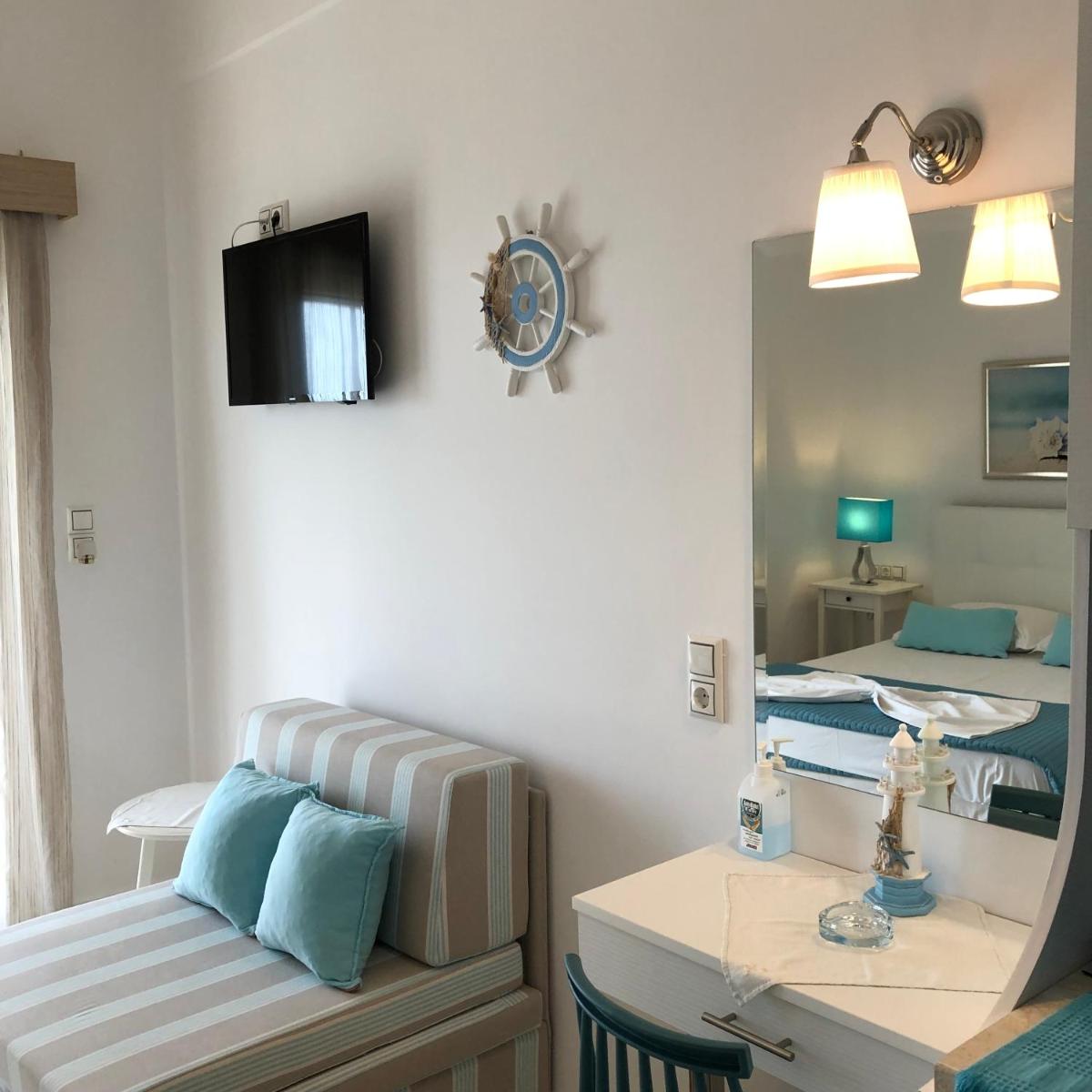 The apartments at Spyridonou House offer a versatile space, complete with a flat-screen TV and a spacious kitchenette offering a stove-top and oven, perfect for preparing simple yet satisfying meals. Rooms are designed with care, accommodating even the most sensitive visitors by being allergy-free and soundproofed to maintain tranquility.