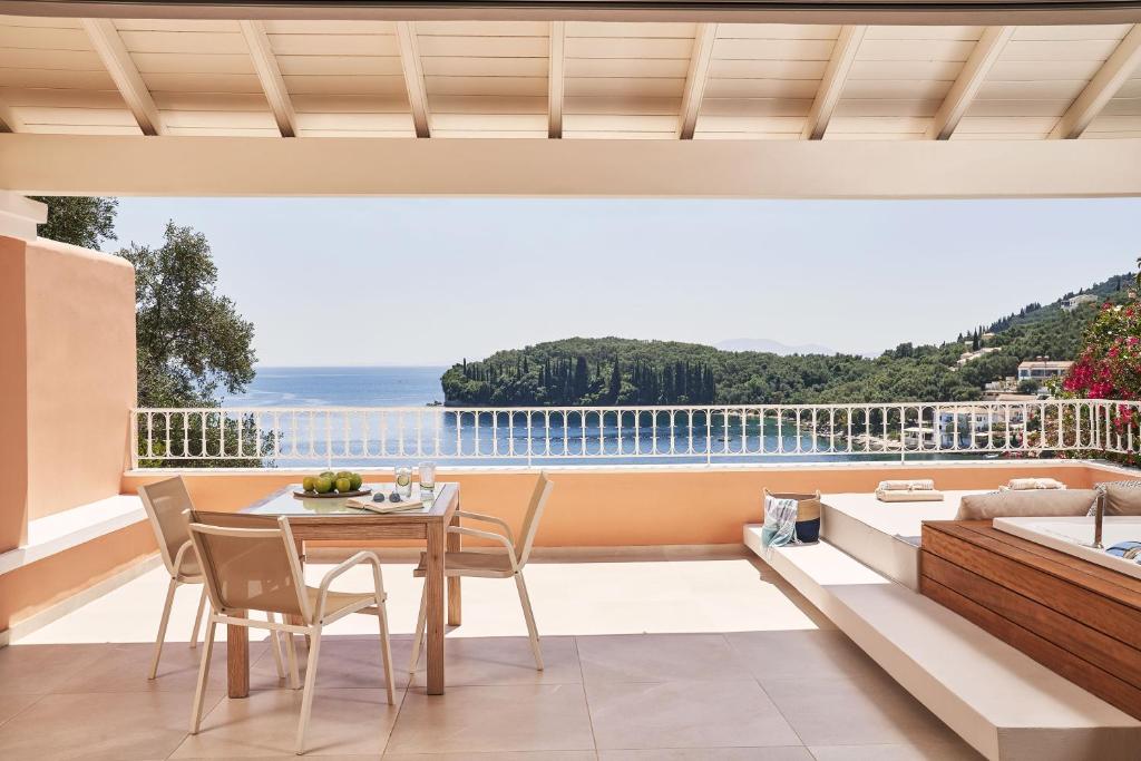 San Antonio Corfu Resort, situated within walking distance of Kalami Beach, boasts an adults-only setting amidst lush olive groves. Perched atop a hillside, this resort offers two pools and exquisite ocean views through its suites and rooms. Guests appreciate the complimentary Wi-Fi throughout the facility, making connectivity seamless during their stay.