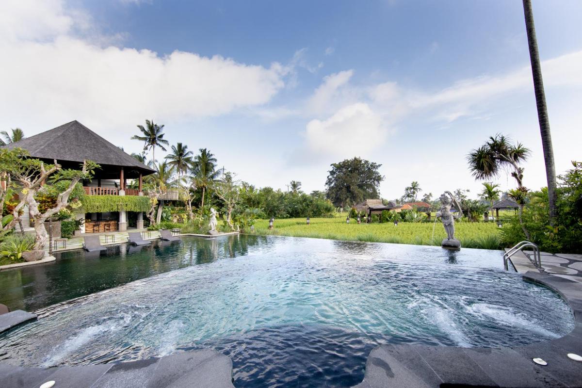 Anumana Village Ubud is a charming accommodation offering a delightful stay within easy reach of Ubud's vibrant cultural hub. Situated just 3.9 miles from Ubud Palace, this 4-star resort promises guests with a blend of luxury and comfort. Guests can enjoy an outdoor swimming pool, free private parking, a lush garden, and a serene terrace, making their stay truly memorable. The hotel boasts a range of amenities including a 24-hour front desk, airport transportation, and a complimentary room service menu. For those seeking relaxation, the property features a cozy bar, a luxurious hot tub, and even a spa for rejuvenation. With its prime location near Ubud's iconic temples and attractions, Anumana Village Ubud caters to both leisure travelers and adventure enthusiasts alike. Whether exploring the rich history of the area or indulging in local cuisine, this property ensures a comfortable and enjoyable experience.
