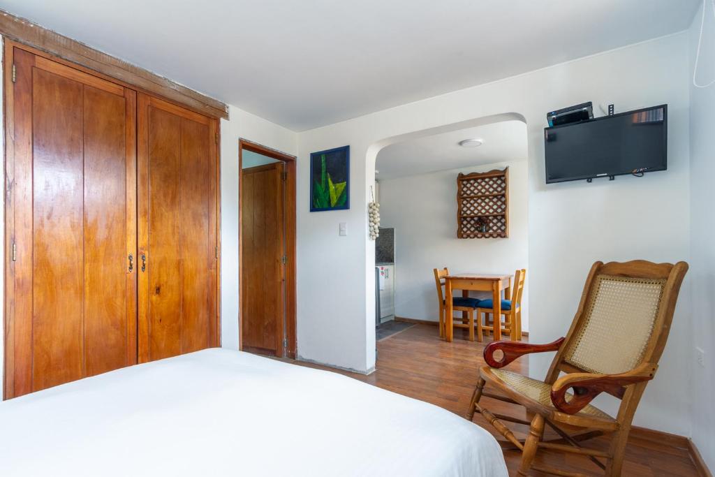 Apartaestudios La Candelaria, a charming historic building nestled in the heart of Bogotá, offers a luxurious retreat featuring a beautifully landscaped garden and complimentary Wi-Fi throughout. Conveniently located just four minutes' stroll from the prestigious Luis Angel Arango Library, guests enjoy the comfort of a private entrance ensuring their privacy. Each accommodation unit boasts a fully-equipped kitchen, offering flexibility in cooking options, as well as a selection of amenities such as laundry facilities and currency exchange services.