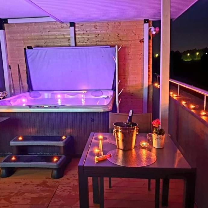 Equipped with a private balcony, the apartment boasts breathtaking views of the surrounding landscape, making for a perfect spot to unwind after a day's adventures. For those seeking relaxation, the property features a luxurious hot tub, ensuring that even the most weary travelers can indulge in tranquility.