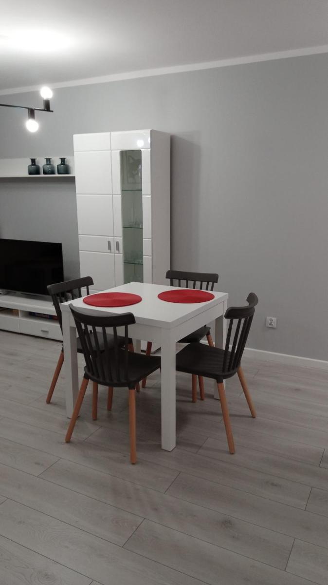 Apartament Jakubek offers accommodation in Polkowice, situated approximately 25 kilometers from both the renowned Art Gallery and the historic Legnica Cathedral. Guests appreciate how accurately the property's description and photos match reality, making their stay seamless and enjoyable. Featuring a spacious 1-bedroom layout, this home comes complete with a comfortable living room, a well-equipped kitchen offering a dining area, and a flat-screen television. The apartment boasts a private bathroom equipped with a shower, along with a washer-dryer facility for added convenience.