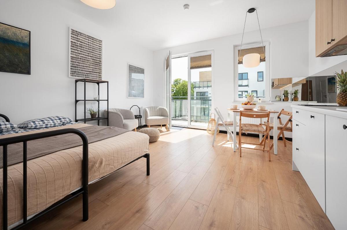 Apartament TOLA, located conveniently near Dzika Beach in Puck, boasts an ideal setting for those seeking relaxation and comfort. Situated just 4 minutes' walk from the stunning sandy shores, guests can enjoy direct access to a serene outdoor space. This beachfront property offers residents the unique privilege of enjoying a balcony, providing them with a delightful vantage point overlooking the sea.