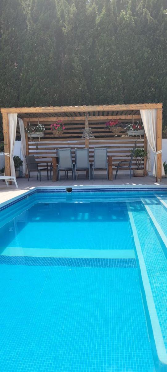 Nice garden, many plants and flowers, pool, terrace.