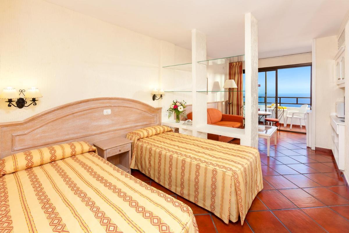 Apartamentos Masaru, nestled in the serene La Paz district of Puerto de la Cruz on Tenerife's northern coast, promises guests a tranquil retreat. This charming apartment complex features two outdoor swimming pools, offering a refreshing oasis amidst the vibrant surroundings. For those seeking a bit more activity, there are also two tennis courts at your disposal, perfect for a leisurely game under the watchful eye of nature.