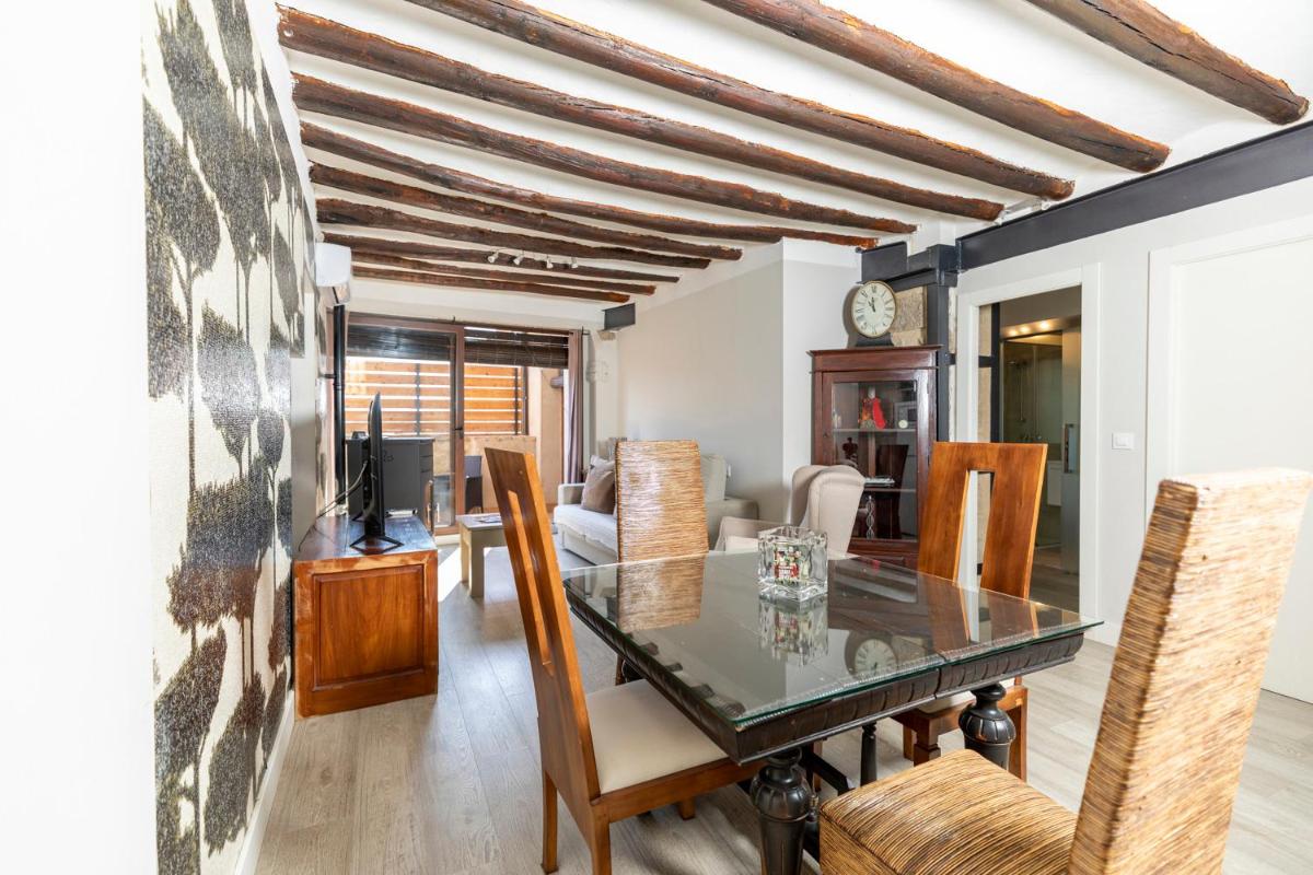 The apartments at Apartamentos Vino Tinto feature wooden furnishings, modern décor and original features such as beamed ceilings.