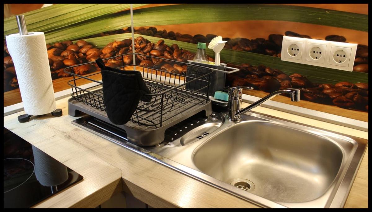 The apartment features modern facilities and a well-equipped kitchen.