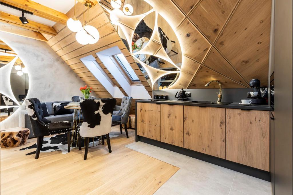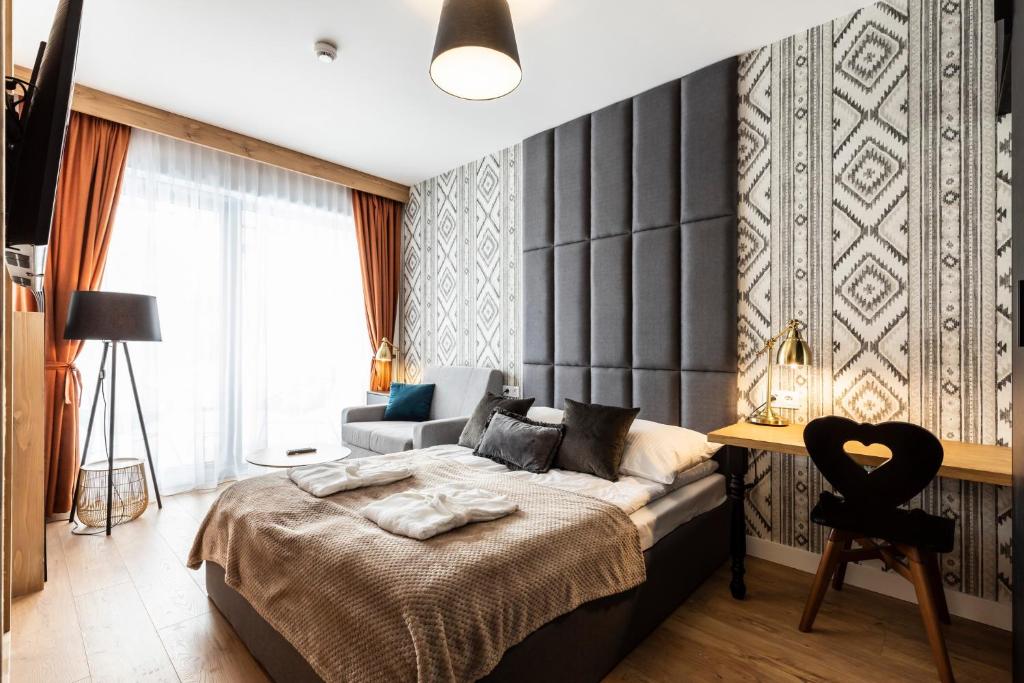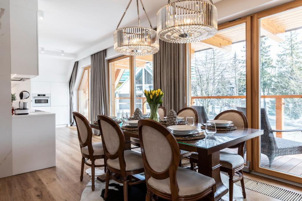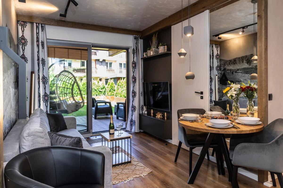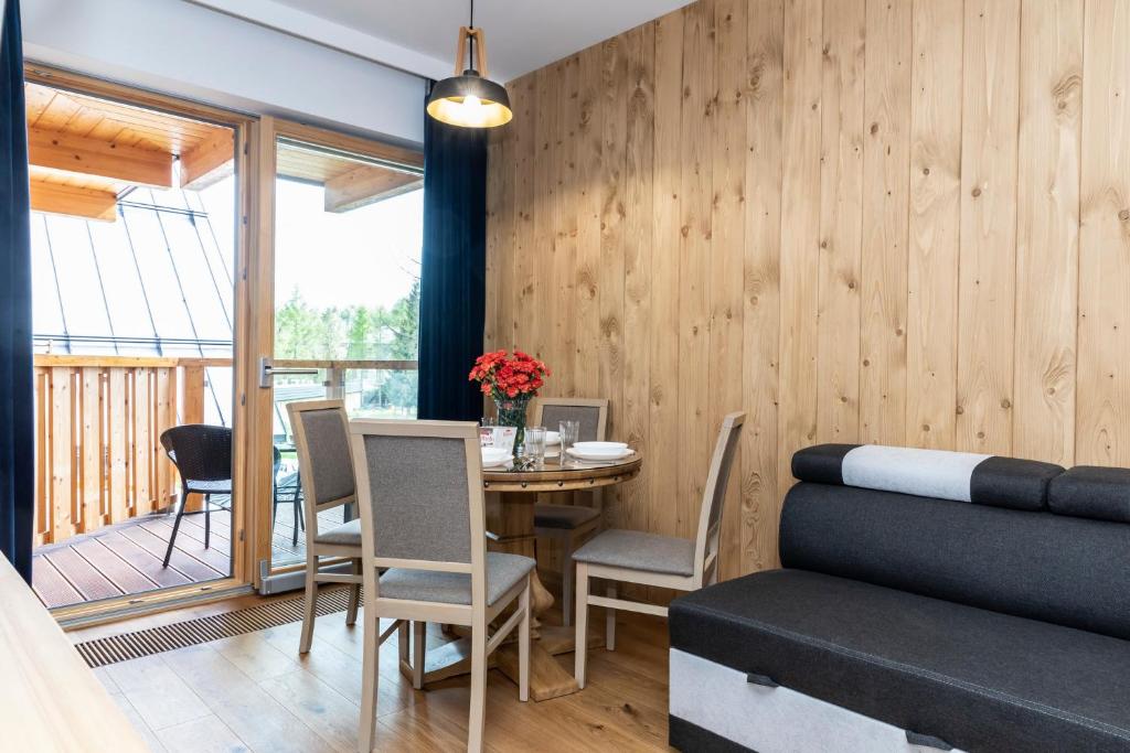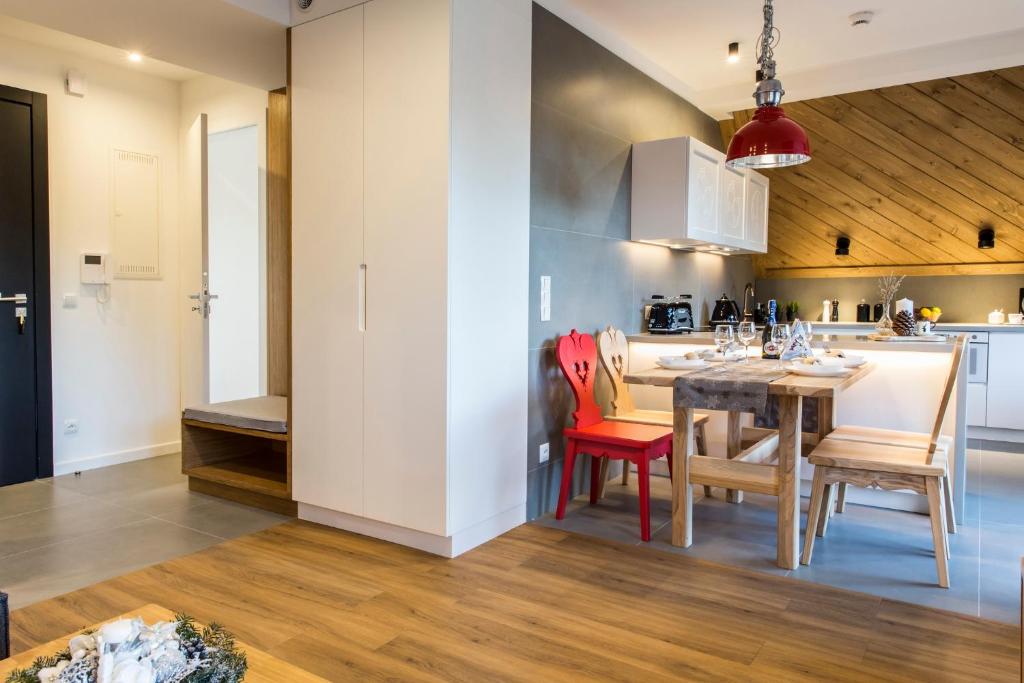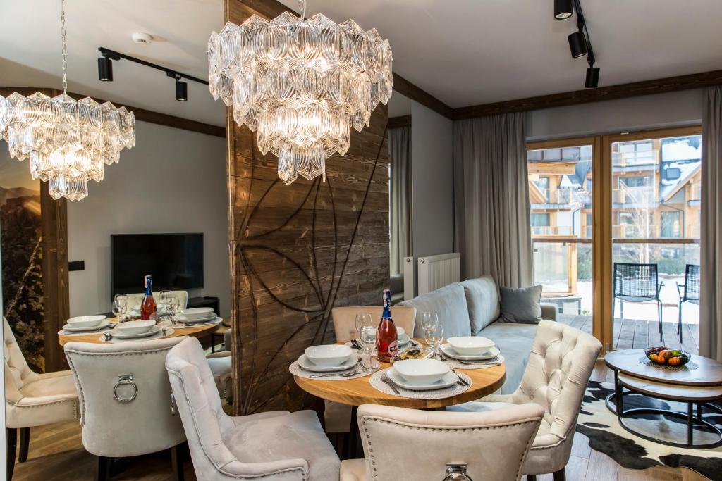 APARTHOTEL ROYAL RESORT SPA Zakopane, located conveniently near the Zakopane Aqua Park, offers a cozy stay with stunning mountain vistas. This charming accommodation features an inviting swimming pool, sauna, and steam room, providing guests with a perfect retreat amidst nature's beauty. The apartments are elegantly furnished with parquet floors and come equipped with modern amenities such as a fully equipped kitchenette, flat-screen TVs, fridges, coffee machines, kettles, and more. Guests can relax by the sun terrace or take advantage of the complimentary Wi-Fi and private parking services. The resort caters to families with its family-friendly facilities and non-smoking options, ensuring a comfortable stay for everyone. Located just 1.2 miles from Zakopane Railway Station and 1.5 miles from Tatra National Park, this peaceful haven promises relaxation and adventure during cooler months.