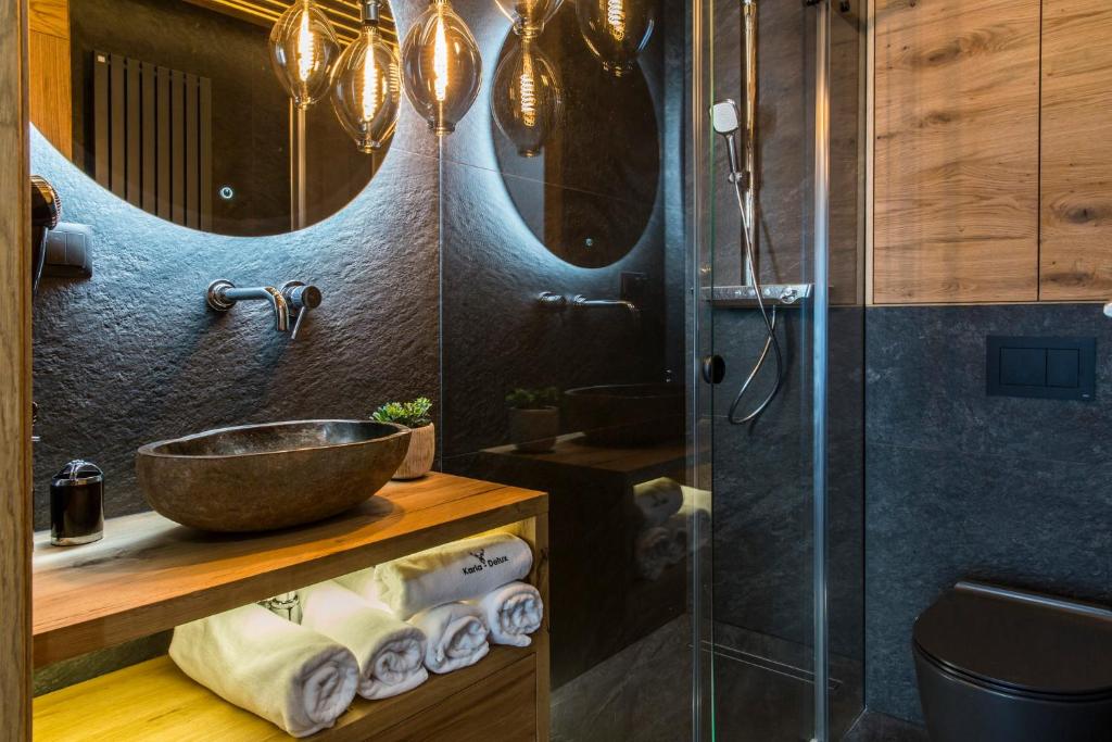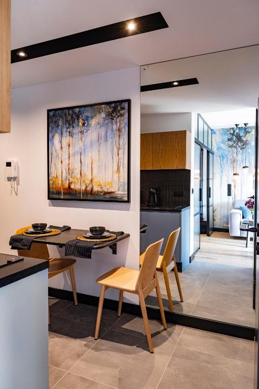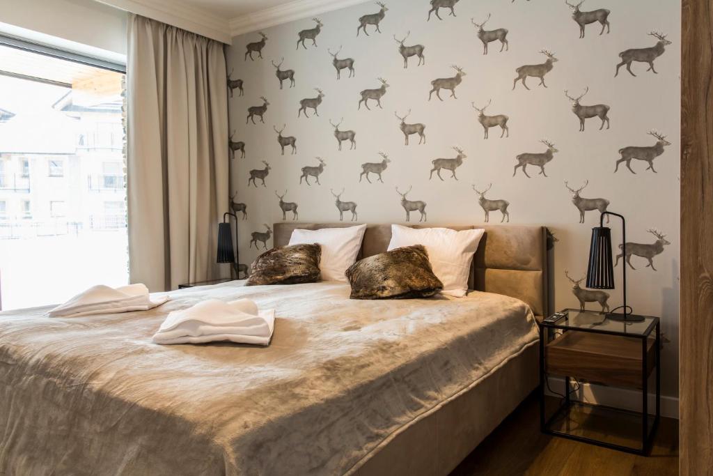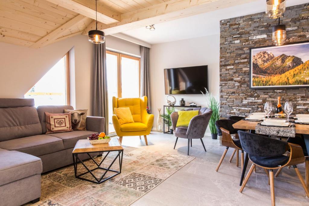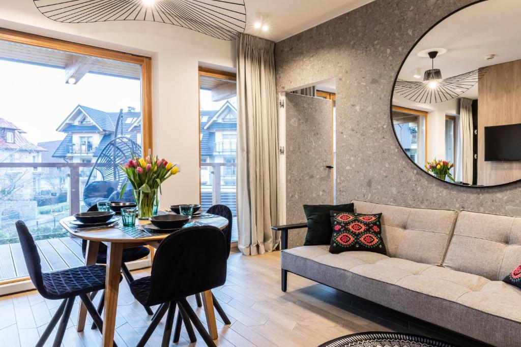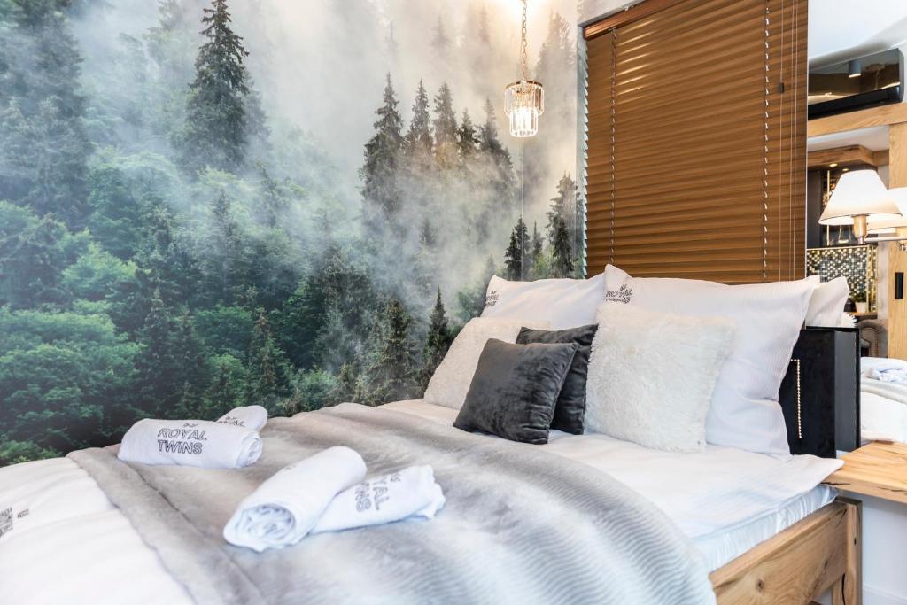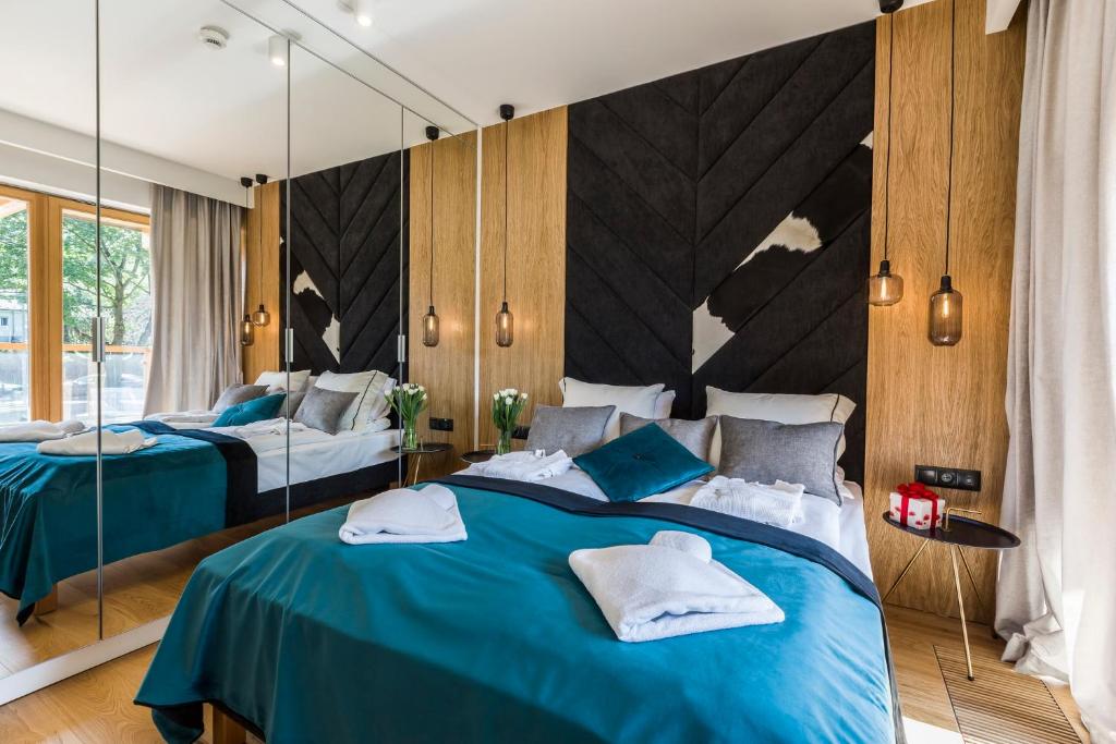 APARTHOTEL ROYAL RESORT SPA Zakopane, located conveniently near the Zakopane Aqua Park, offers a cozy stay with stunning mountain vistas. This charming accommodation features an inviting swimming pool, sauna, and steam room, providing guests with a perfect retreat amidst nature's beauty. The apartments are elegantly furnished with parquet floors and come equipped with modern amenities such as a fully equipped kitchenette, flat-screen TVs, fridges, coffee machines, kettles, and more. Guests can relax by the sun terrace or take advantage of the complimentary Wi-Fi and private parking services. The resort caters to families with its family-friendly facilities and non-smoking options, ensuring a comfortable stay for everyone. Located just 1.2 miles from Zakopane Railway Station and 1.5 miles from Tatra National Park, this peaceful haven promises relaxation and adventure during cooler months.