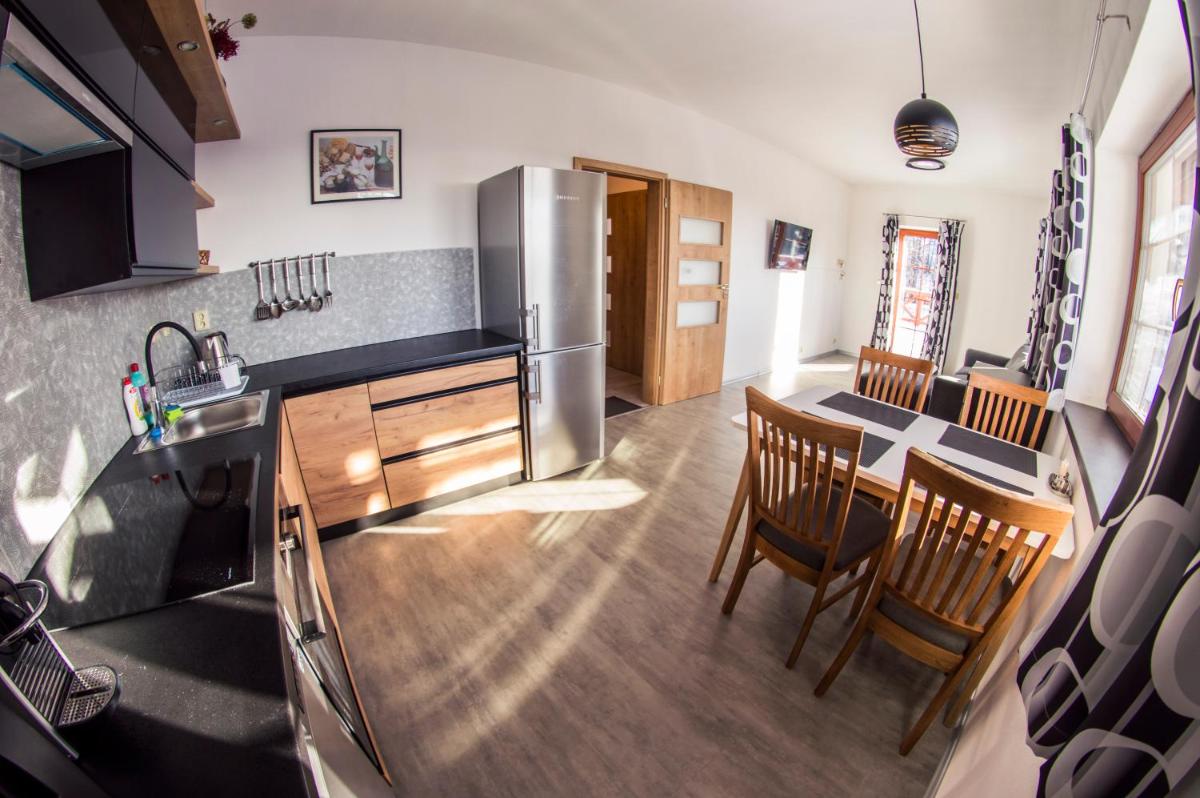 Apartmán Benecko 213, situated in Benecko, provides comfortable accommodations just 8.1 miles from Bus Stop Strážné and 28 miles from Szklarki Waterfall. Guests have access to a terrace and can park their vehicles privately. The property includes a tour desk and bicycle parking, making it ideal for those seeking relaxation amidst nature. With free Wi-Fi, the 1-bedroom apartment boasts a flat-screen TV and a fully equipped kitchen featuring a dishwasher and oven. Guests will find towels and bed linens included, ensuring comfort during their stay. An outdoor dining area enhances the living experience, offering guests the opportunity to enjoy meals al fresco.