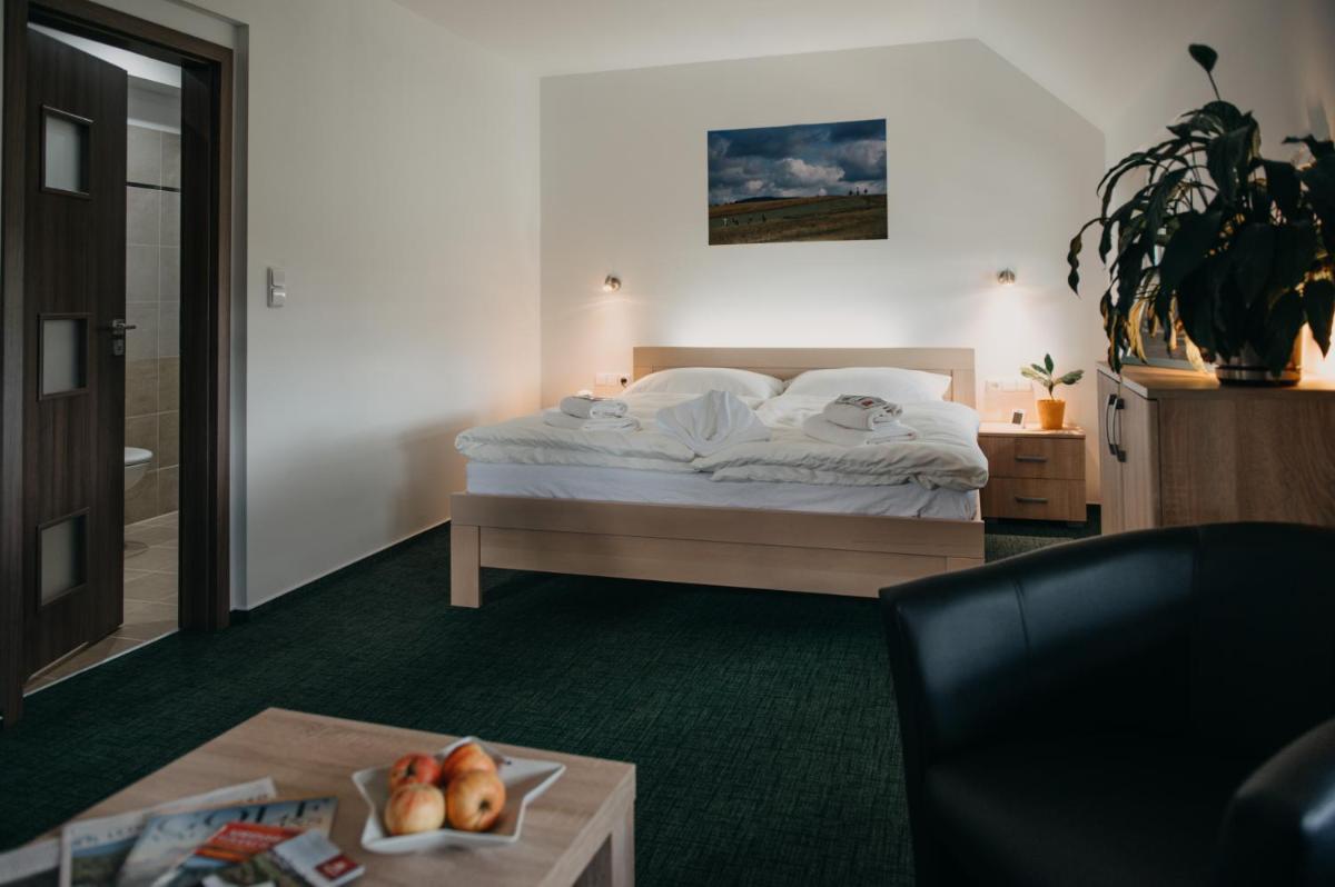 The Pension Grosshof in Broumov offers charming accommodations with a welcoming atmosphere. Guests appreciate the detailed descriptions and high-quality photos, which accurately reflect the property's charm and facilities. The pension boasts a beautiful garden and spacious terraces, providing a perfect setting for relaxation and leisure.