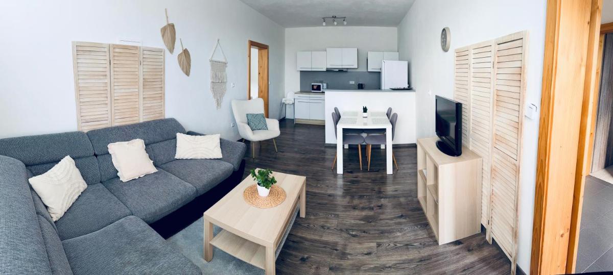 Apartmán Lilly, situated in Borovany, lies approximately 11 kilometers from Main Bus Station České Budějovice, 11 kilometers from České Budějovice Train Station, and 12 kilometers from Black Tower. This charming accommodation features a spacious layout with two bedrooms, a fully-equipped kitchen, and an outdoor dining area. Guests appreciate its proximity to several notable landmarks such as Chateau Hluboká, which is situated 18 kilometers away, and the nearby Rotating Amphitheatre, located 20 kilometers from the property. Conveniently placed near Ceske Budejovice Airport, just 14 kilometers from the apartment, visitors can easily reach various destinations within the region. The apartment offers guests the flexibility of using their entire space and enjoying complimentary Wi-Fi services, making it an ideal choice for those seeking a comfortable stay with convenient access to local amenities and attractions.
