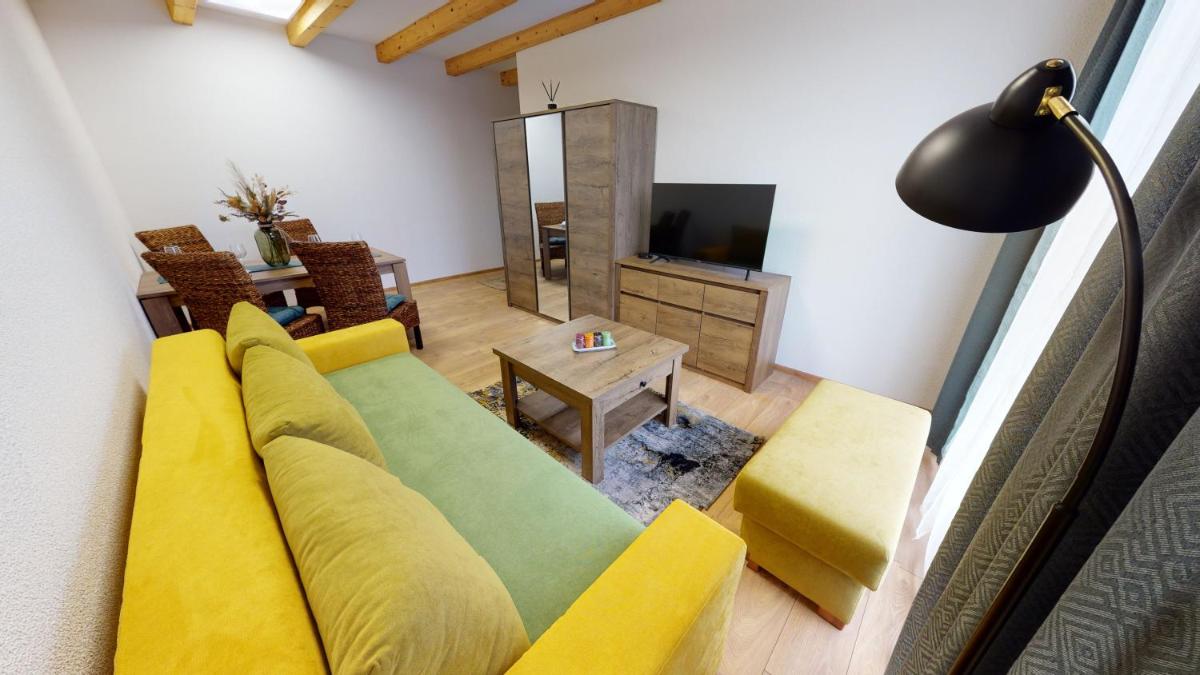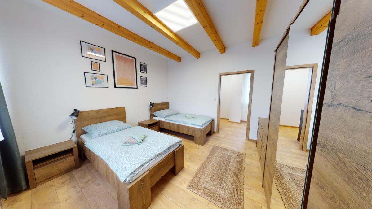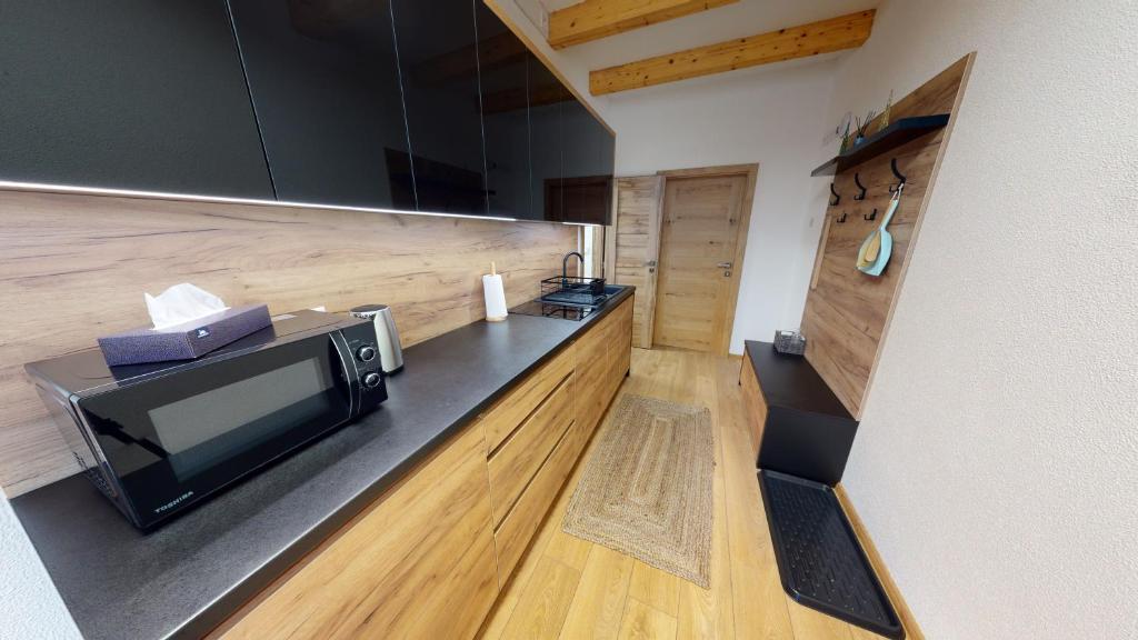 Apartmány Podkova, nestled in Levoča just 20 miles from the historic Spis Castle, provides an ideal getaway offering breathtaking city views. This charming accommodation features modern amenities including free Wi-Fi, private parking, and a convenient private entrance. Each unit boasts plush parquet floors, a fully equipped kitchen equipped with essential appliances such as a microwave, refrigerator, stove, and utensils, making cooking a breeze. The spacious dining area ensures meals can be enjoyed comfortably, while a flat-screen TV with various cable channels keeps entertainment at your fingertips. Private bathrooms offer showers along with slippers for relaxation.