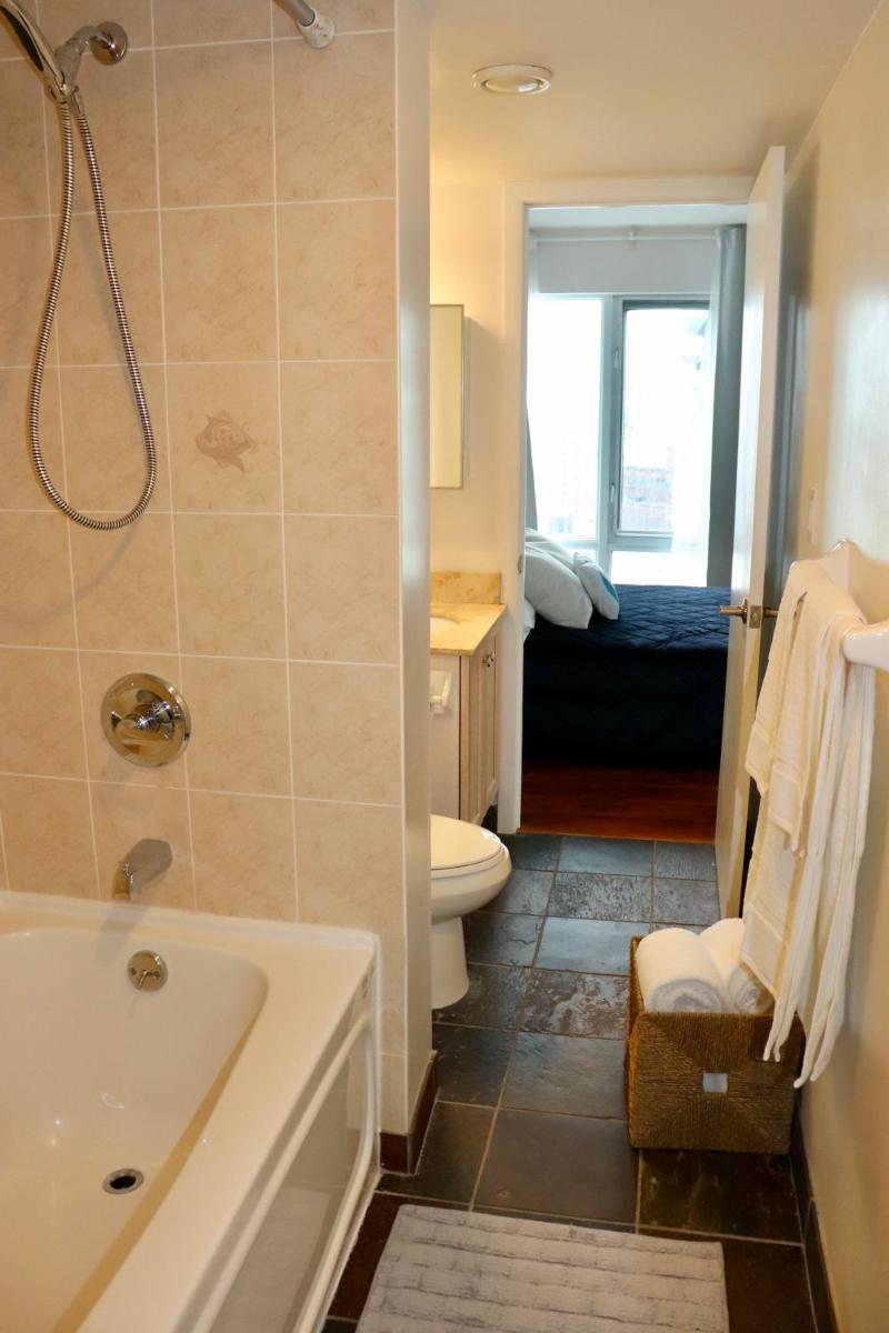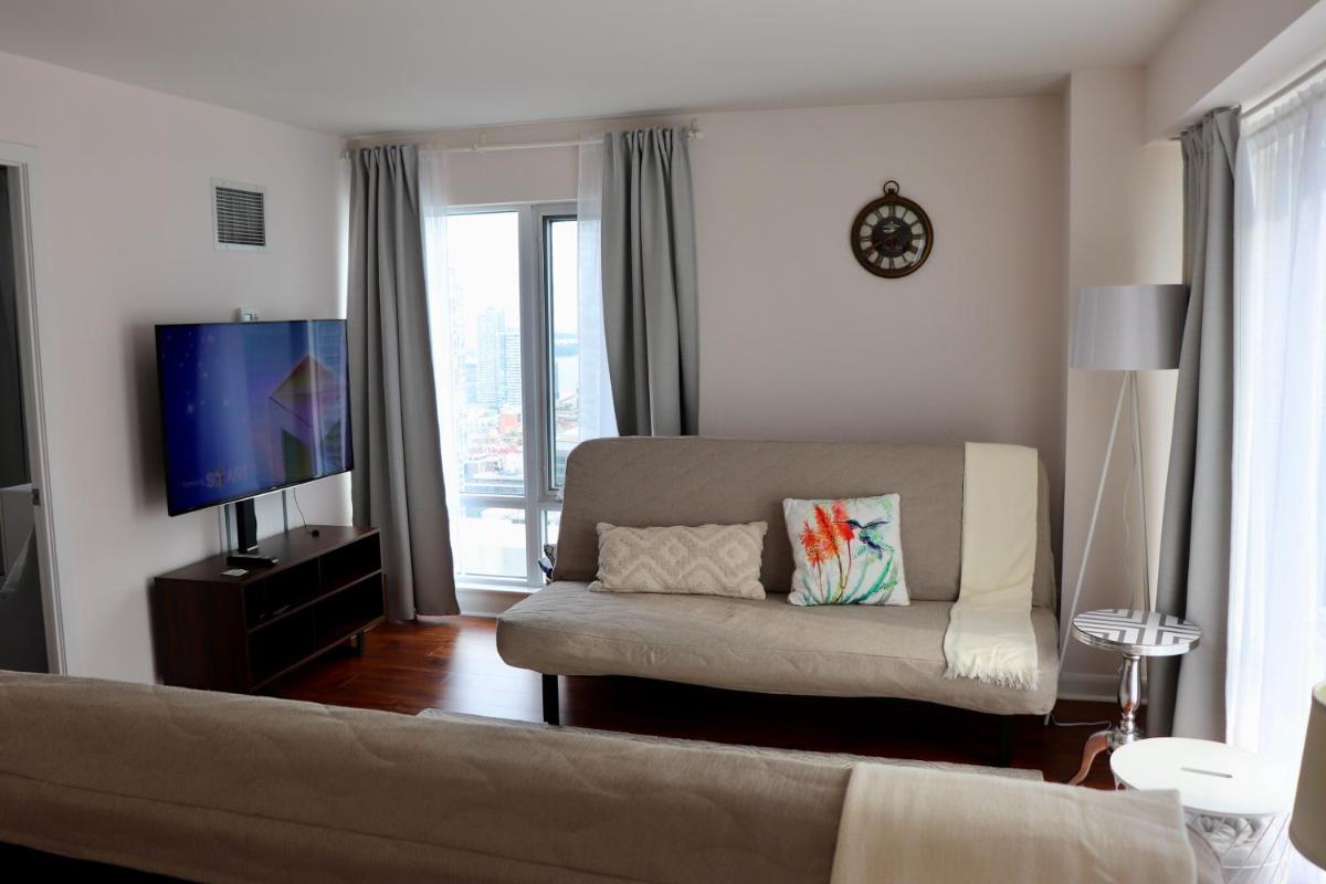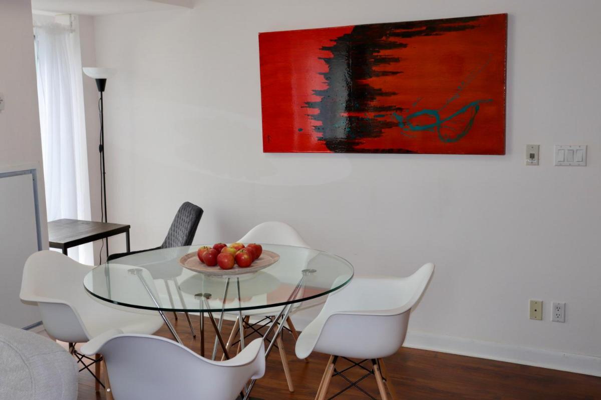 This charming apartment in downtown Toronto offers guests a perfect blend of comfort and convenience. Located just a 10-minute stroll from the bustling Four Seasons Center for the Performing Arts and mere 0.6 miles away from the iconic Hockey Hall of Fame, it's situated in a prime location where history meets modernity. Free private parking, an elevator, and complimentary Wi-Fi provide a convenient haven for both business travelers and leisure seekers alike. The spacious apartment boasts 2 bedrooms, a well-equipped kitchen complete with a dishwasher and kettle, ensuring every guest feels at home. The two luxurious bathrooms feature baths and hair dryers, making daily routines a breeze. Accommodation comes with free toiletries, providing ample privacy and comfort. Accessible via a private entrance, the property is secured throughout the day with full-day security measures, ensuring peace of mind during stays. Situated 0.4 miles from the heart of the city and just 1.1 miles from Sugar Beach, this apartment promises a vibrant urban experience. Popular attractions nearby include Yonge-Dundas Square, Ryerson University, and Toronto Eaton Center, offering endless opportunities for exploration and relaxation. Conveniently located near popular museums such as the Musée des Sujets et du Débat (Police Museum & Discovery Centre), the Hockey Hall of Fame, and the Bata Shoe Museum, there's no shortage of cultural experiences within walking distance. Additionally, the proximity to Billy Bishop Toronto City Airport makes travel arrangements seamless. With its 93 square meters of space, this apartment offers plenty of room for families and groups of friends. The air conditioning ensures comfort even during warm summer days, while the kitchenette provides everything needed for cooking meals or snacks. Whether seeking a quiet retreat or a lively adventure, this apartment in Toronto presents itself as an ideal choice for those looking to immerse themselves in the vibrant city life.