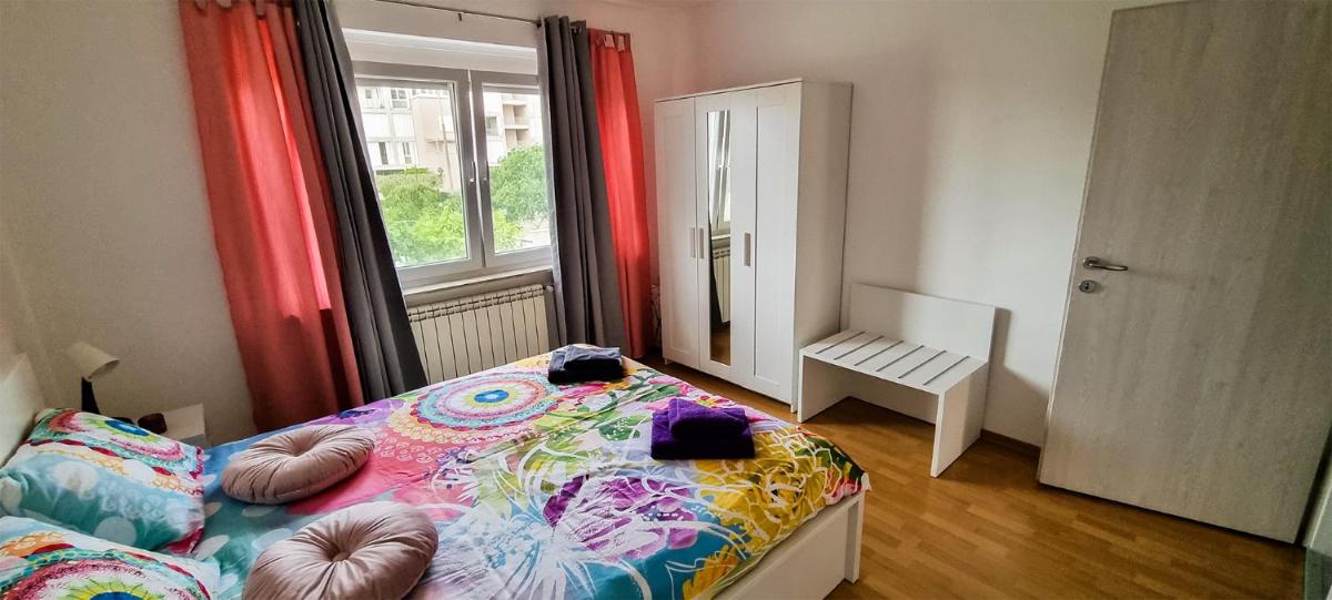 Beautiful apartment, large bathroom and bedroom, separate living room and fully equipped kitchen with a small balcony outside.