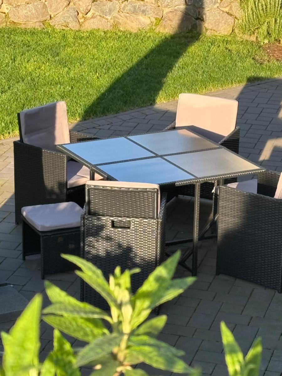 Equipped with modern amenities such as a satellite flat-screen TV, a washing machine, and a fully-furnished kitchenette with a dishwasher and oven, guests will find everything they need to prepare their meals and entertain themselves. The free Wi-Fi ensures connectivity during stays, while the ample outdoor seating area allows for pleasant al fresco dining under the open sky.