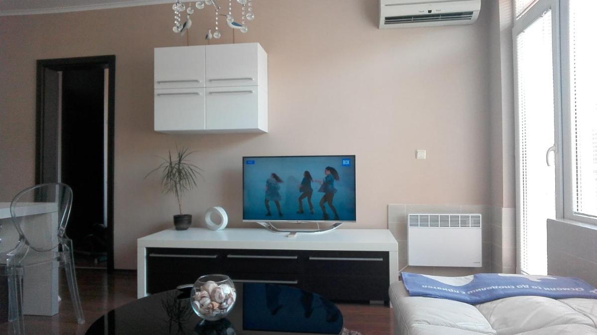 Apartment Titata, located in Pomorie, boasts convenient access to major attractions such as the Museum of Aviation (8.5 miles) and the Burgas Salt Works (12 miles). This luxurious abode features a free shuttle service, making travel effortless. Enjoy the comfort of an elevator, ensuring smooth navigation through the premises. Free Wi-Fi ensures seamless connectivity, enhancing your stay. The spacious apartment encompasses two bedrooms, a living room, satellite flat-screen TV, an equipped kitchen, and one en suite bathroom with a shower. Luxurious amenities include towels and bed linens, providing ultimate comfort. Private entrance and soundproofing enhance privacy, offering a serene retreat. The terrace offers panoramic views of the city, perfect for enjoying the surroundings. Situated just 9.3 miles from Burgas Airport, transportation to nearby destinations is easily accessible. Popular points of interest within walking distance include Central Beach Pomorie, East Beach Pomorie, and Black Sand Beach. With its 80 square meters of space, Apartment Titata provides ample room for relaxation and entertainment. Book your stay today to experience unparalleled convenience and luxury in Pomorie.