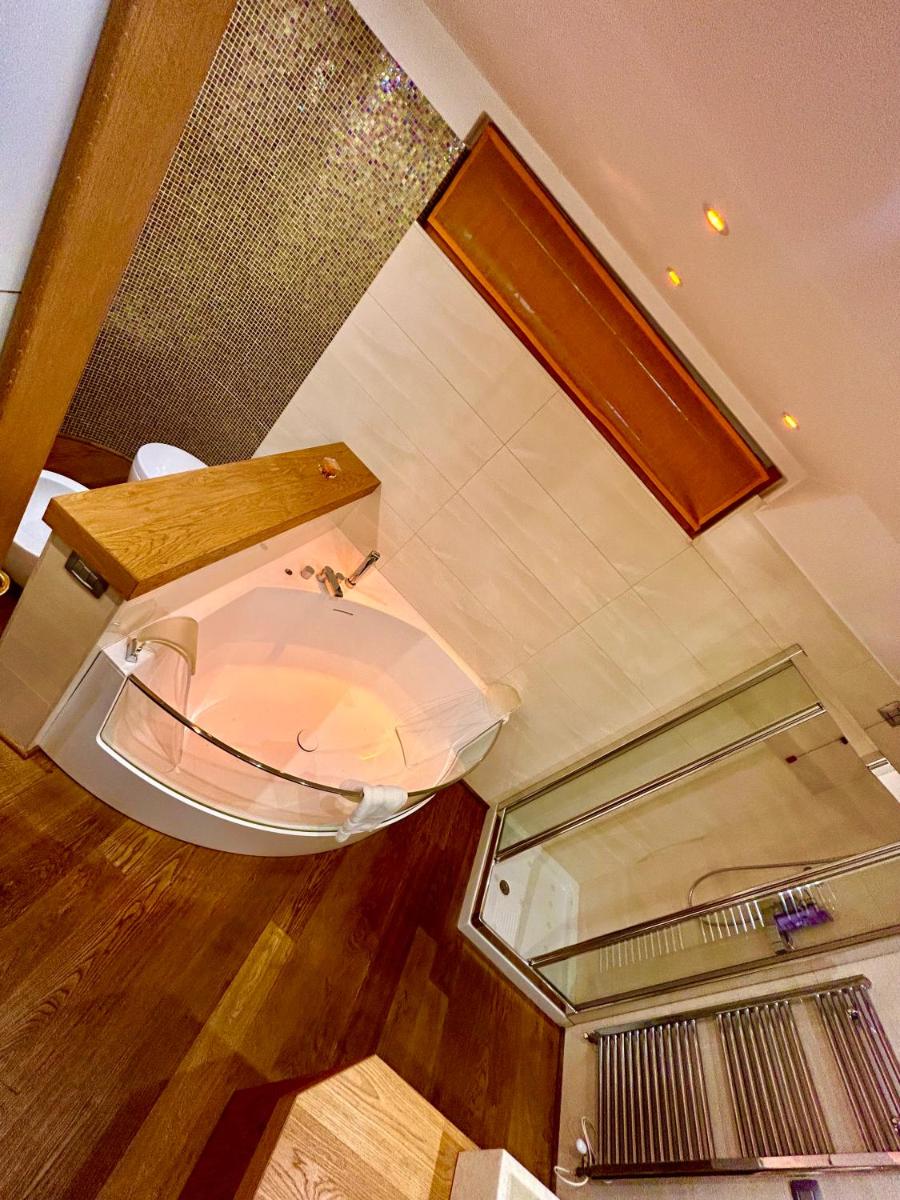 The apartment boasts an expansive layout with ample space for both relaxation and entertainment. It comes complete with a spacious bedroom, a fully equipped kitchen, and two bathrooms equipped with a hot tub and bidet. The apartments are furnished with high-quality linens and towels, creating a comfortable environment for every guest. A terrace and garden view offer breathtaking vistas, enhancing the overall ambiance.