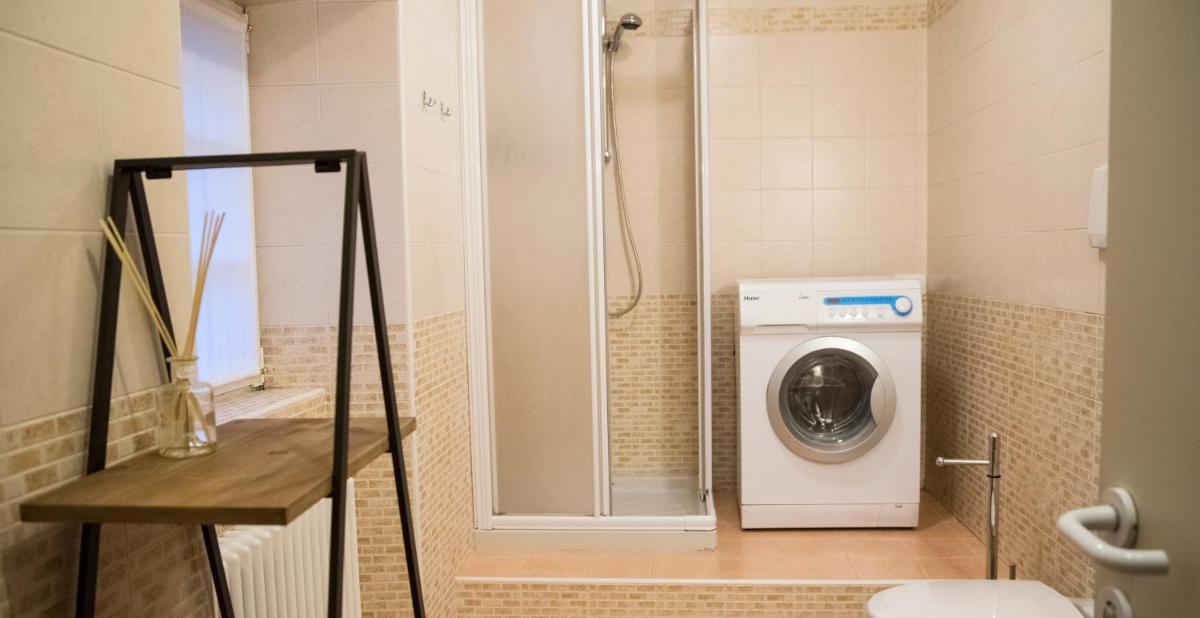 The apartment has a living room, kitchen with all necessary utensils, bathroom with washing machine and living room with TV. Large and well maintained. Great location