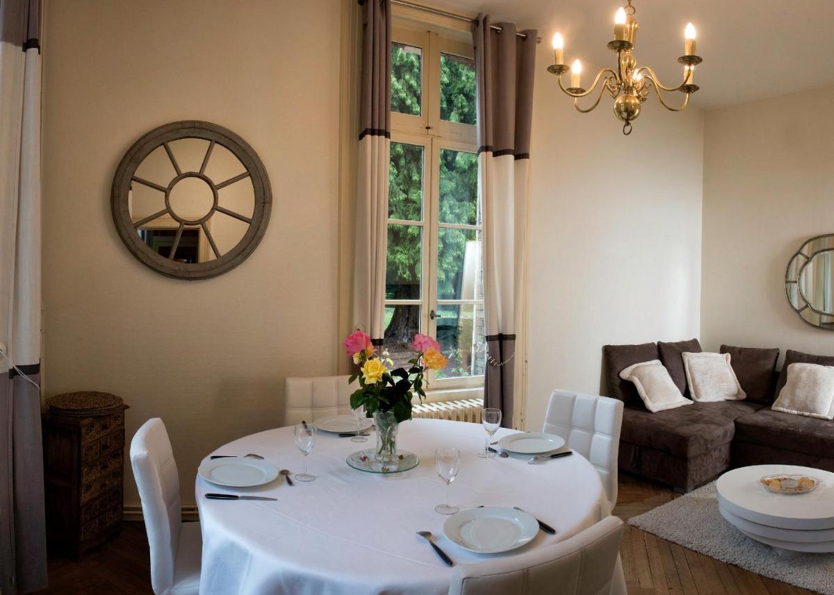 Appart Privé dans le Château du Landin, located approximately 18 miles from Parc des Expositions de Rouen in Le Landin, provides an exceptional stay offering direct access to a state-of-the-art fitness facility and an inviting outdoor pool. This charming property boasts spacious accommodations with a fully equipped kitchen, laundry facilities, and luxurious amenities such as a private entrance and comprehensive security measures. Guests can enjoy a variety of dining experiences, including both à la carte and traditional continental breakfast options featuring freshly baked pastries, fruits, and juices. The property's prime location near numerous recreational activities makes it ideal for those seeking a relaxing getaway. With its convenient proximity to various attractions and transportation hubs, this 4-star accommodation promises a memorable stay in the heart of France.