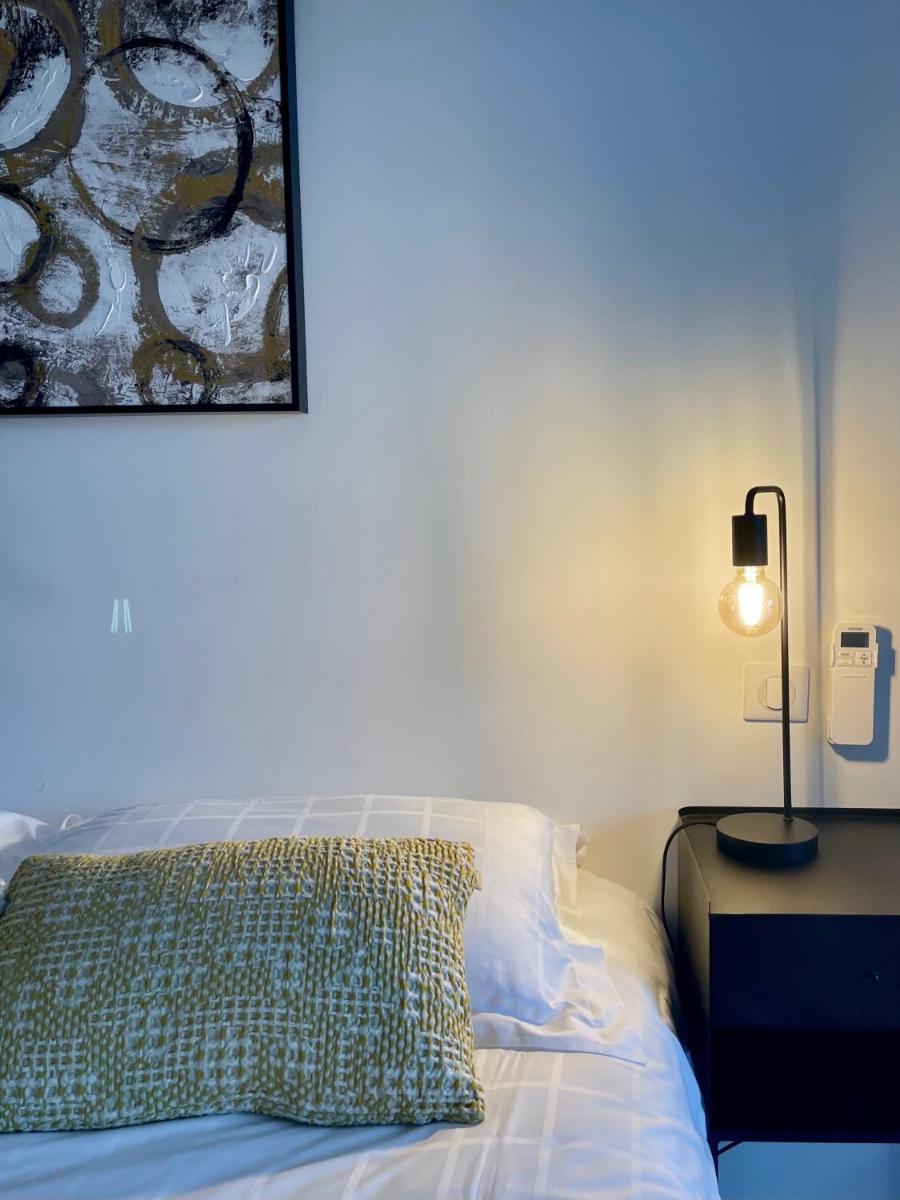 The apartment offers a comfortable air-conditioned layout, comprising one separate bedroom, a well-equipped living room, a fully stocked kitchen (with a dishwasher and oven), and a private bathroom. Guests will also appreciate the flat-screen TV with streaming services, ensuring entertainment at their fingertips. An outdoor dining area provides ample space for meals outdoors.