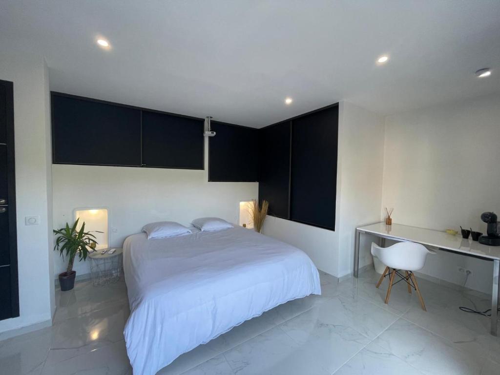 The Appartement Villa d'Aurore in Le Rouyet offers comfortable accommodation featuring spacious family rooms with air conditioning, private bathrooms, and panoramic mountain views. Enjoy an inviting swimming pool, terrace, and complimentary WiFi throughout. Additional amenities include a washing machine, coffee machine, and outdoor dining area. Private parking is available on-site. Conveniently located near attractions like Parfumerie Fragonard and Palais des Festivals de Cannes, this property boasts highly-rated room cleanliness, a scenic setting, and attentive service.