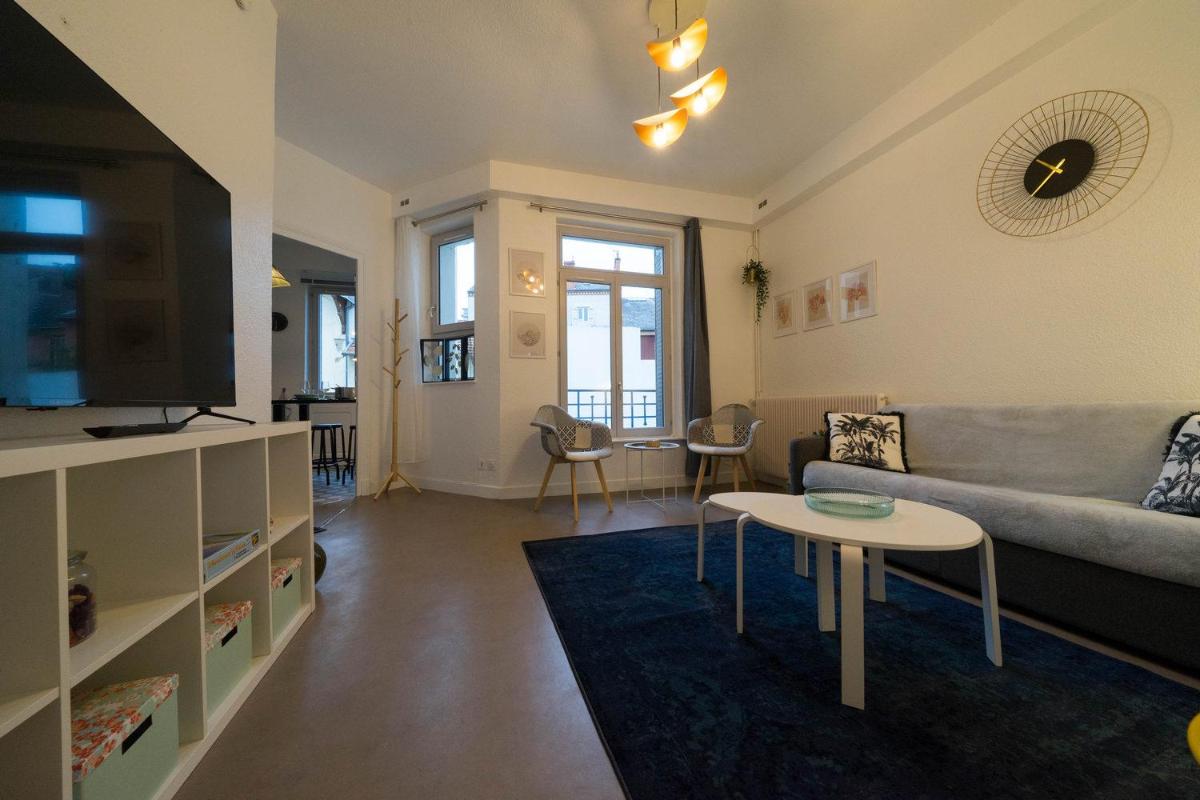 AppartUnique - Chez Klein offers guests a charming accommodation in Vichy, just a short stroll from Vichy Train Station and conveniently located at a mere half-mile from Célestins Spring. This modern apartment boasts a spacious layout featuring two bedrooms, a fully-equipped kitchen, and a flat-screen TV. Enjoy a peaceful retreat with the comfort of a sun terrace and a private balcony. The property also comes with a 24-hour front desk, ensuring convenience and peace of mind. Free Wi-Fi connectivity ensures smooth communication during your stay. Each bedroom is generously sized, providing ample space for relaxation and entertainment. Guests can enjoy a refreshing dip in the nearby spring, enhancing their overall experience. With its prime location near Palais des Congrès Opéra Vichy, Vichy Racecourse, and easy access to the airport, this apartment offers a perfect blend of urban conveniences and natural beauty.