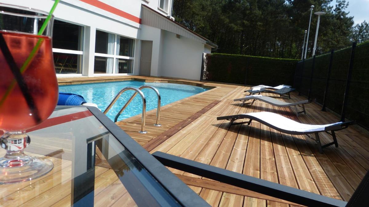 Hotel ARBOR - Les Hunaudieres - Le Mans Sud - Mulsanne, situated 6.2 miles south of Le Mans and just 3.1 miles from the Automobile Museum, boasts a charming contemporary decor within its spacious rooms offering free WiFi access, satellite TV, and a private bathroom equipped with complimentary toiletries and a hairdryer. This inviting establishment features a partly covered terrace providing a pleasant respite from the sun. Guests can relax by the non-heated outdoor swimming pool, which adds to the overall serene ambiance. The hotel's proximity to both the A28 motorway and the Mans Race starting point makes it convenient for those interested in exploring nearby attractions such as the CPFI - Musiques du Monde, Musée de Tessé, Musée Archéologique Paul Térouanne, Musée Vert, Maison de l'Éau, Musée des 24 Heures, Musée automobile de la Sarthe, and Musée Jean-Claude-Boulard/Carré Plantagenêt. For those who prefer a quieter stay, the hotel's non-smoking policy ensures a peaceful environment. Free private parking is conveniently accessible, while a secure car park with an access code provides added security. Conveniently located near the Musée automobile de la Sarthe, this hotel caters well to couples seeking a memorable getaway, boasting an impressive rating of 8.8 out of 10 for their ideal travel experience.