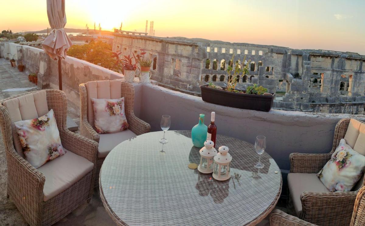 Wonderful views of the Pula Arena opened up from the apartment's balcony. The interior of the apartment is very tasteful and is very well thought...