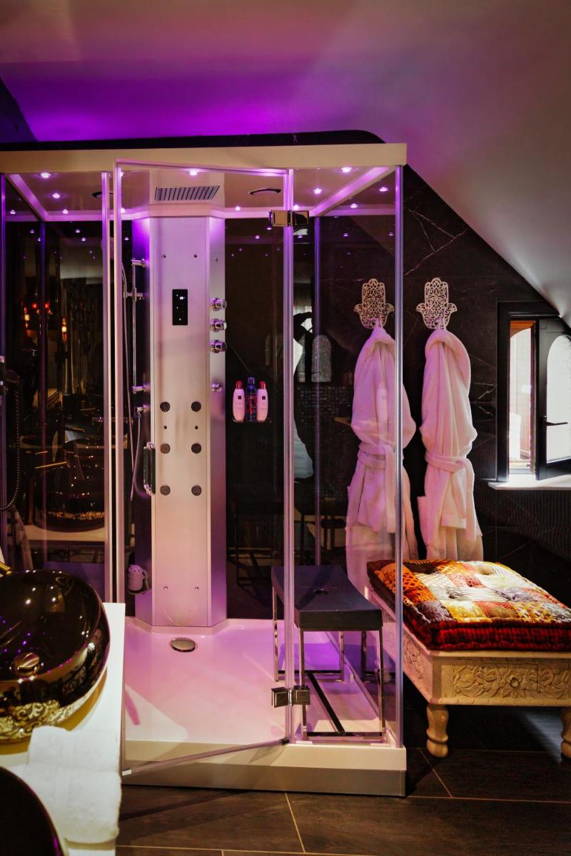 B&B 1001 Nacht in Zonhoven offers adults-only accommodations featuring a seasonally open outdoor swimming pool, lush gardens, and barbecue facilities. This newly renovated property features private parking on-site, along with a sauna, hammam, spa, and wellness packages. Each unit includes air conditioning, satellite TV, a coffee machine, a private bathroom, and complimentary Wi-Fi. Guests relish the complimentary buffet and continental breakfast with local specialties, pastries, and pancakes served daily. Enjoy activities in and around Zonhoven, such as walking tours. For those who prefer outdoor pursuits, B&B 1001 Nacht provides ample space for cycling and hiking within a short distance. Nearby attractions include museums, markets, and train stations. The property's proximity to Hasselt Market Square makes it an ideal base for exploring the area further.