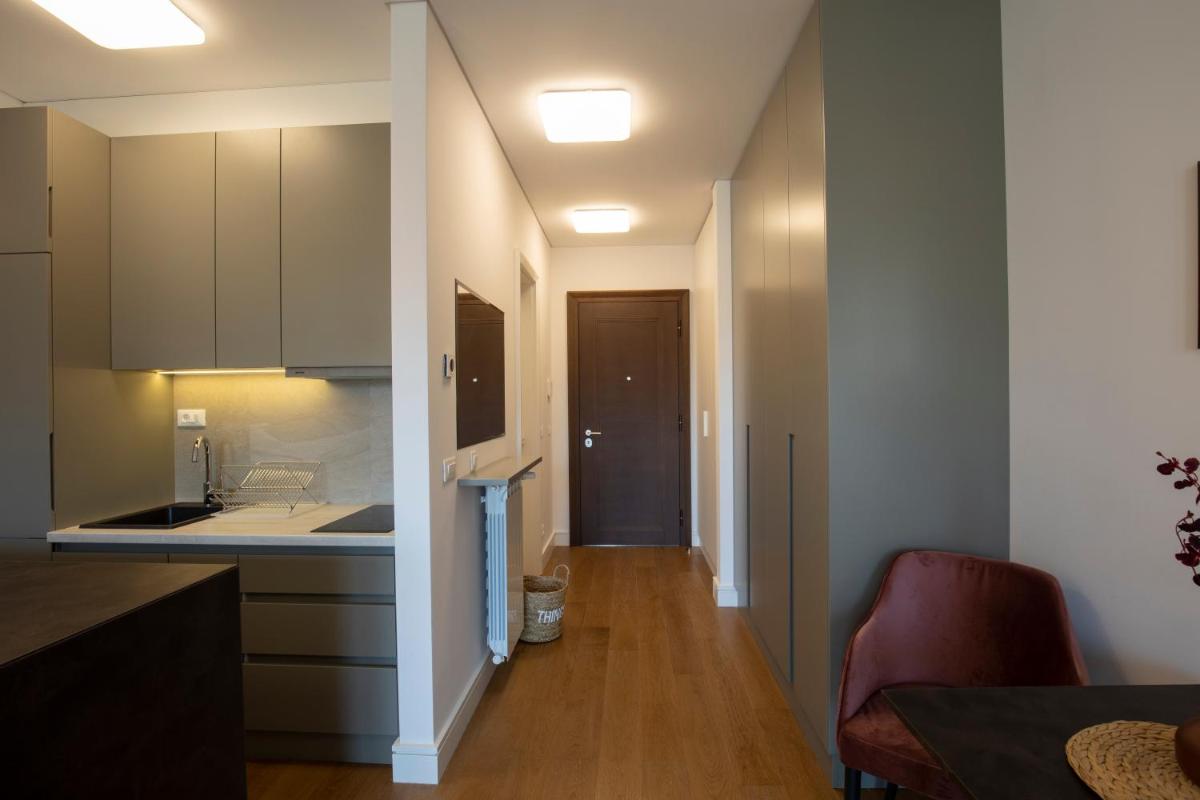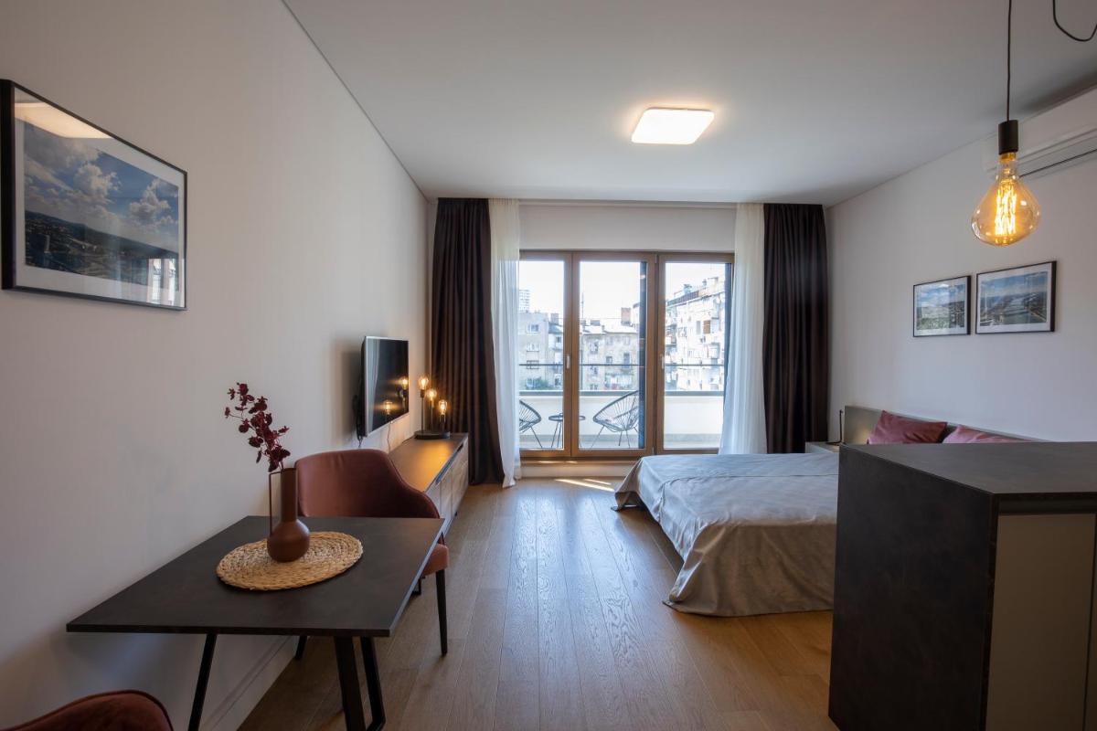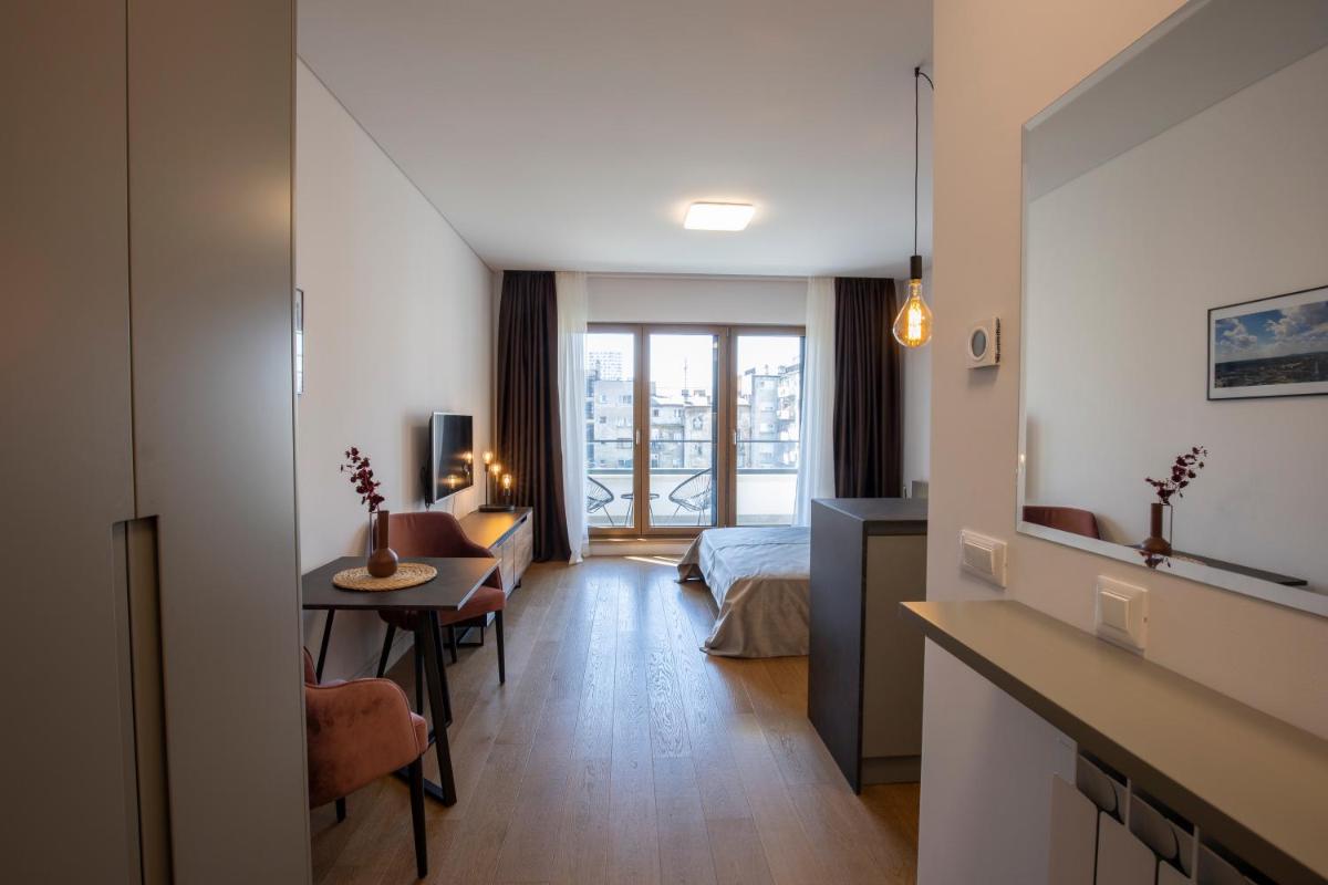 The apartment is located in a walking distance from several bus stops, a huge shopping center Galerija, city center and multiple food and drinking...