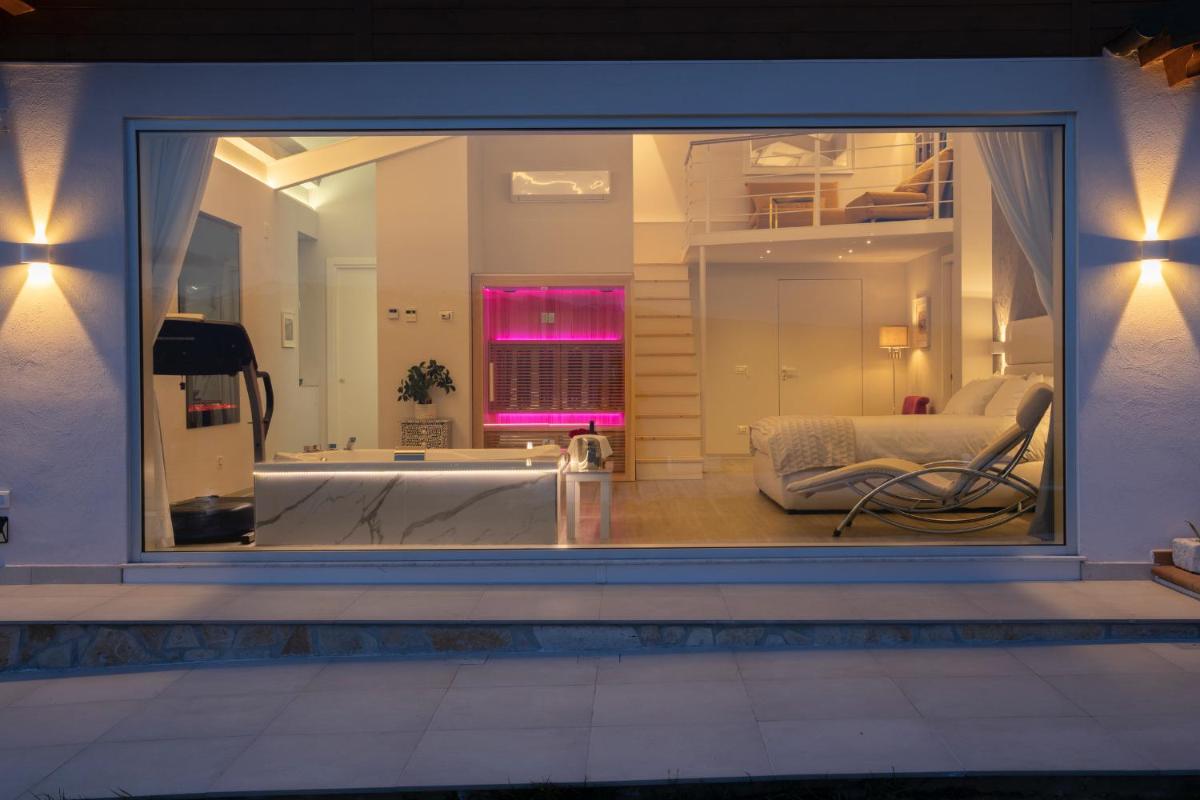 Upon arrival, guests are greeted by a welcoming atmosphere featuring comfortable sofas and plush armchairs. A private entrance allows them to explore the cozy interior, adorned with soft lighting and warm decor. The space includes essential amenities such as air conditioning, heating, and a fully equipped private bathroom, providing a comfortable base for relaxation and rejuvenation.