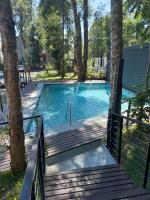 The apartment has a beautiful view of the pool.