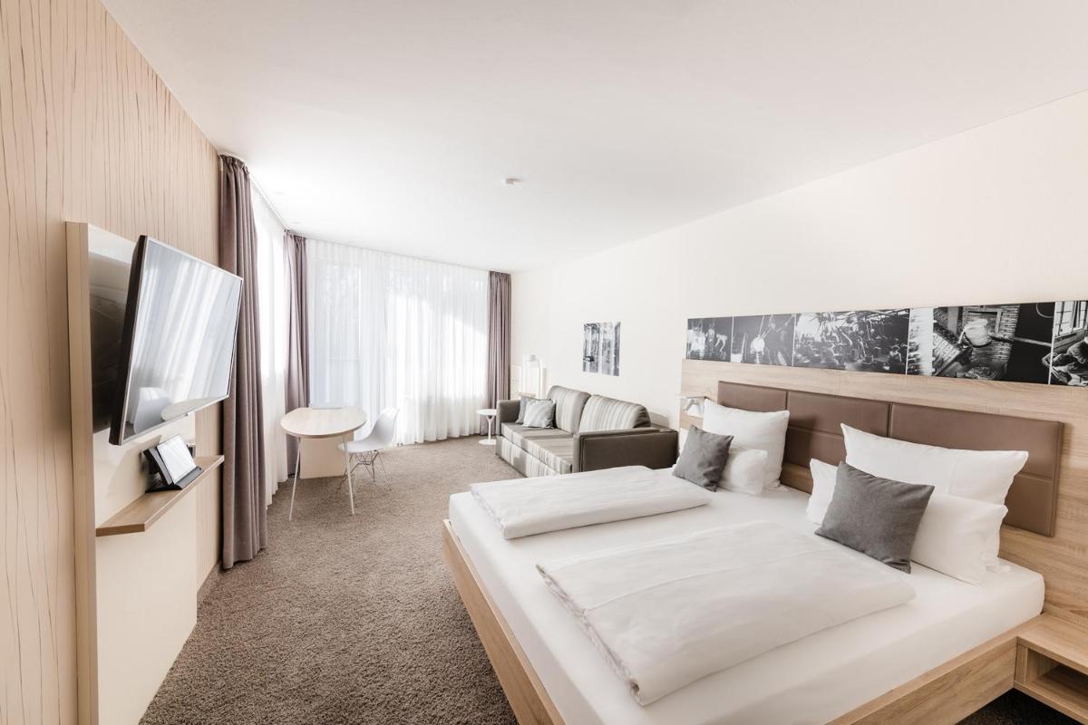 The hotel's prime location makes it easily accessible to various attractions and destinations. Just steps away from the vibrant town center lies the 10-hectare Herminghaus Park, offering lush greenery and ample space for relaxation. For those seeking culinary delights, the hotel features a restaurant serving Westphalian and international cuisine, complemented by a selection of beverages and Sky satellite channels available in the hotel bar.