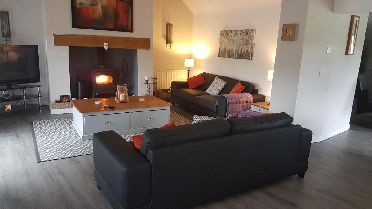 This holiday home has 4 bedrooms, a kitchen with a fridge and an oven, a flat-screen TV, a seating area and 2 bathrooms fitted with a shower.