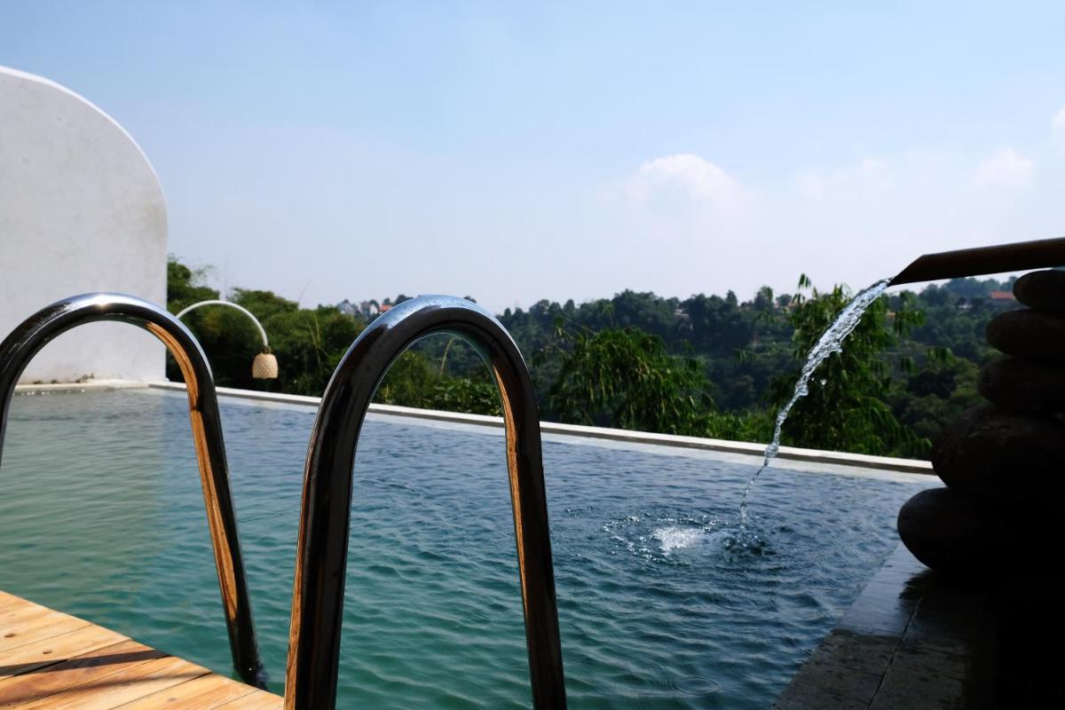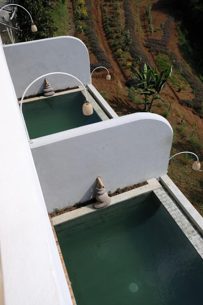 Boscha Villas 101, nestled in Bandung, provides guests with an idyllic retreat featuring a beautifully landscaped garden. Enjoy the convenience of free Wi-Fi, private parking, and a cozy balcony offering breathtaking views. Relax by the tranquil pool surrounded by lush vegetation, complete with a protective fence and captivating poolside scenery.