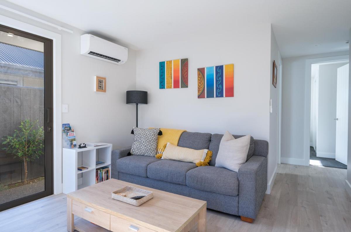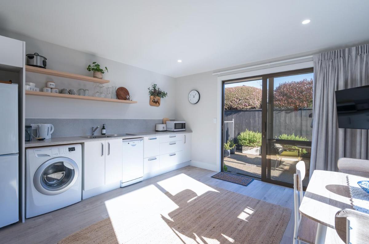 The modern and sunny central Motueka property offers accommodations within easy reach of Christ Church Cathedral and Trafalgar Park. Accessible via a private terrace, free private parking, and complimentary Wi-Fi, this charming abode provides everything needed for a comfortable stay. Enjoy a private check-in and check-out experience, as well as dedicated bicycle parking. Guests can explore the local area, which boasts various amenities including a swimming pool and tennis courts. The property features a fully-equipped kitchenette, complete with a dining area and a flat-screen TV, ensuring ample entertainment options. For those seeking relaxation, the outdoor dining area invites alfresco meals under the picturesque surroundings. During warm weather, the BBQ facilities offer the perfect opportunity to savor authentic New Zealand cuisine on the private patio. Motueka's scenic trails await adventurous souls, offering numerous opportunities for exploration. Conveniently located near Nelson Airport, this centrally situated property ensures a seamless journey to other attractions.